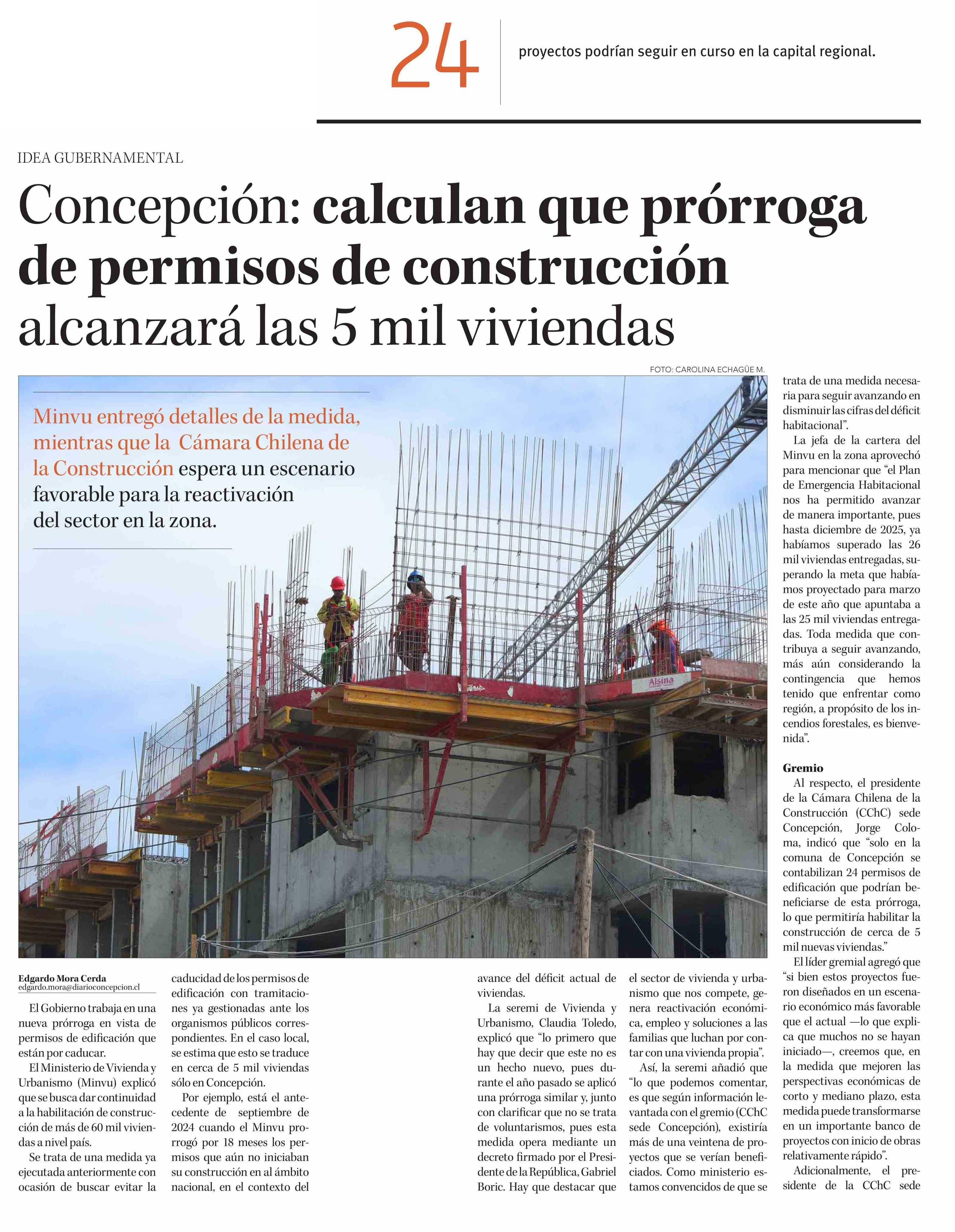 Concepción: calculan que prórroga de permisos de construcción alcanzará las 5 mil viviendas