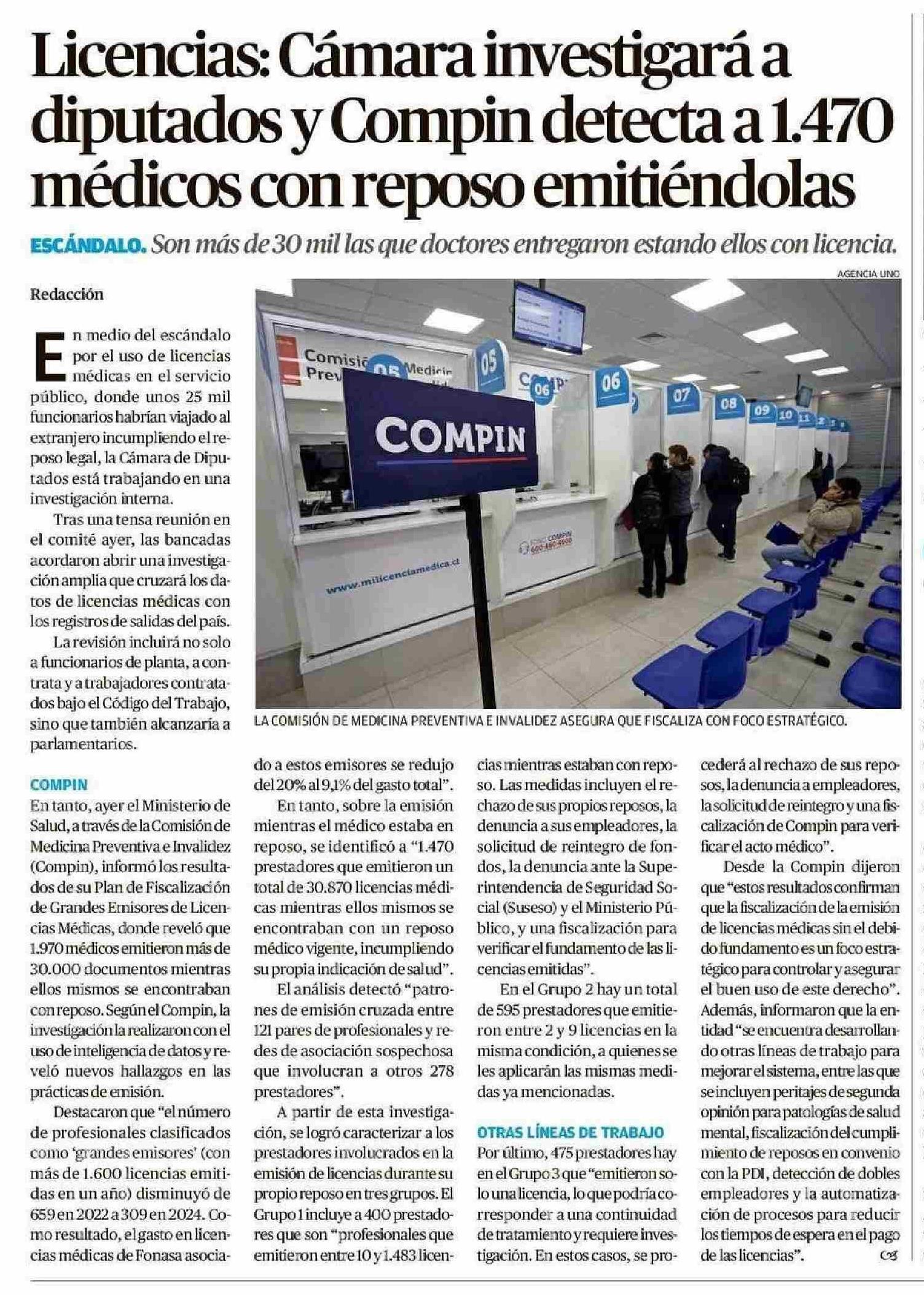 Licencias: Cámara investigará a diputados y Compin detecta a 1.470 médicos con reposo emitiéndolas