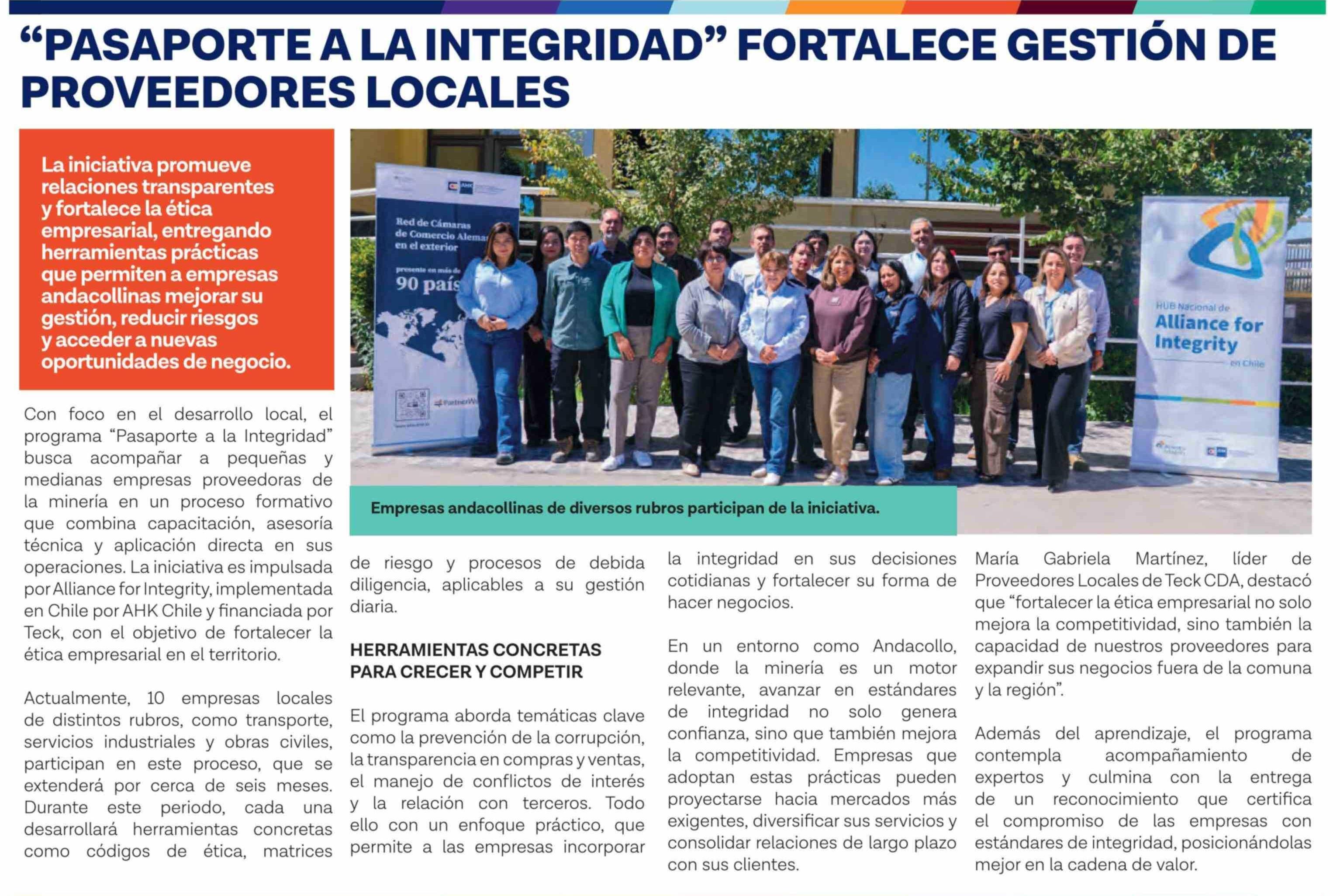 "PASAPORTE ALA INTEGRIDAD" FORTALECE GESTIÓN DE PROVEEDORES LOCALES