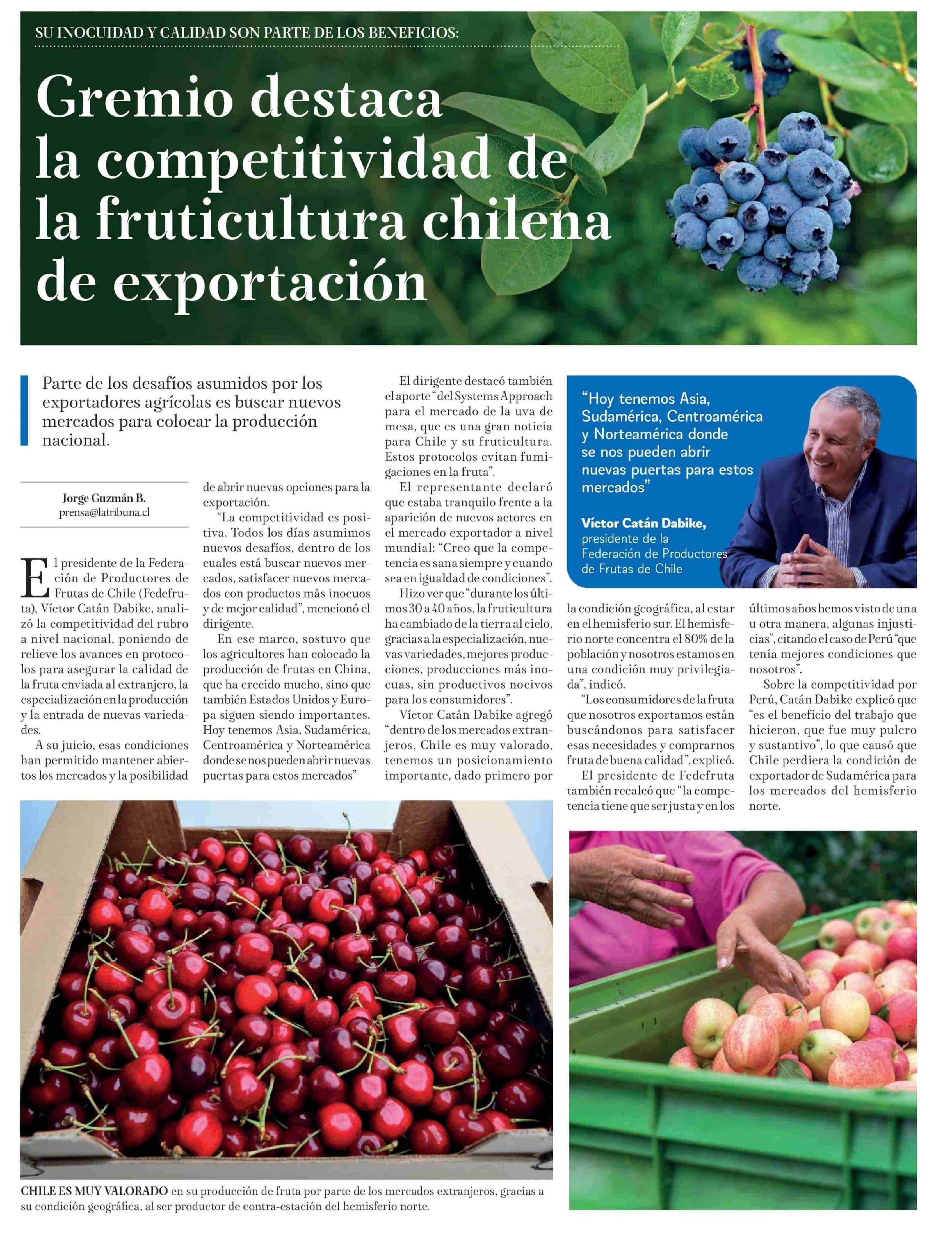 Gremio destaca la competitividad de la fruticultura chilena de exportación