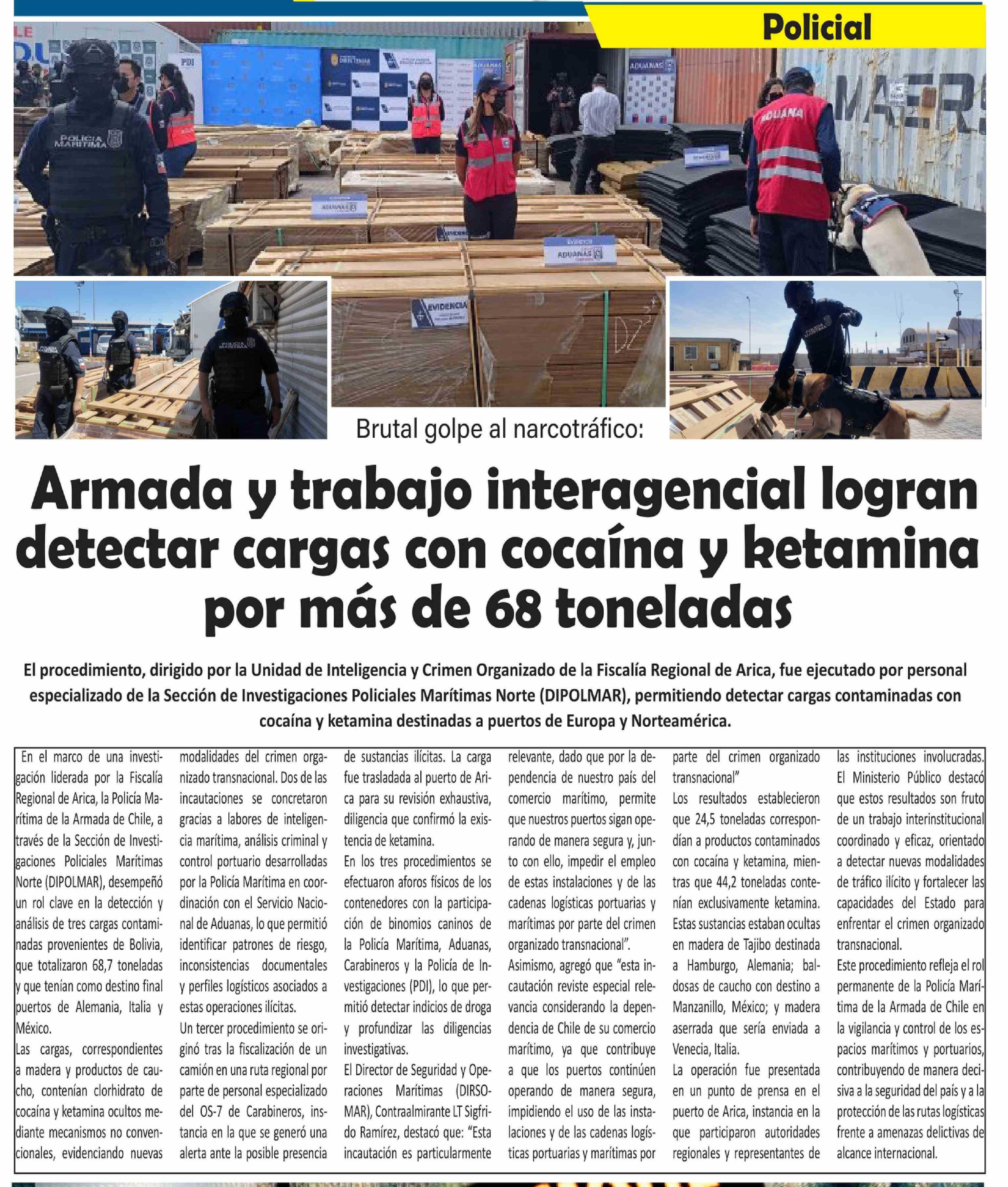 Armada y trabajo interagencial logran detectar cargas con cocaína y ketamina por más de 68 toneladas