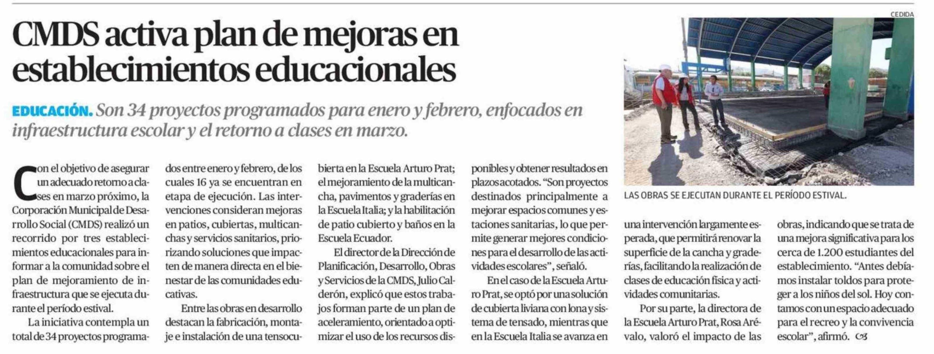 CMDS activa plan de mejoras en establecimientos educacionales