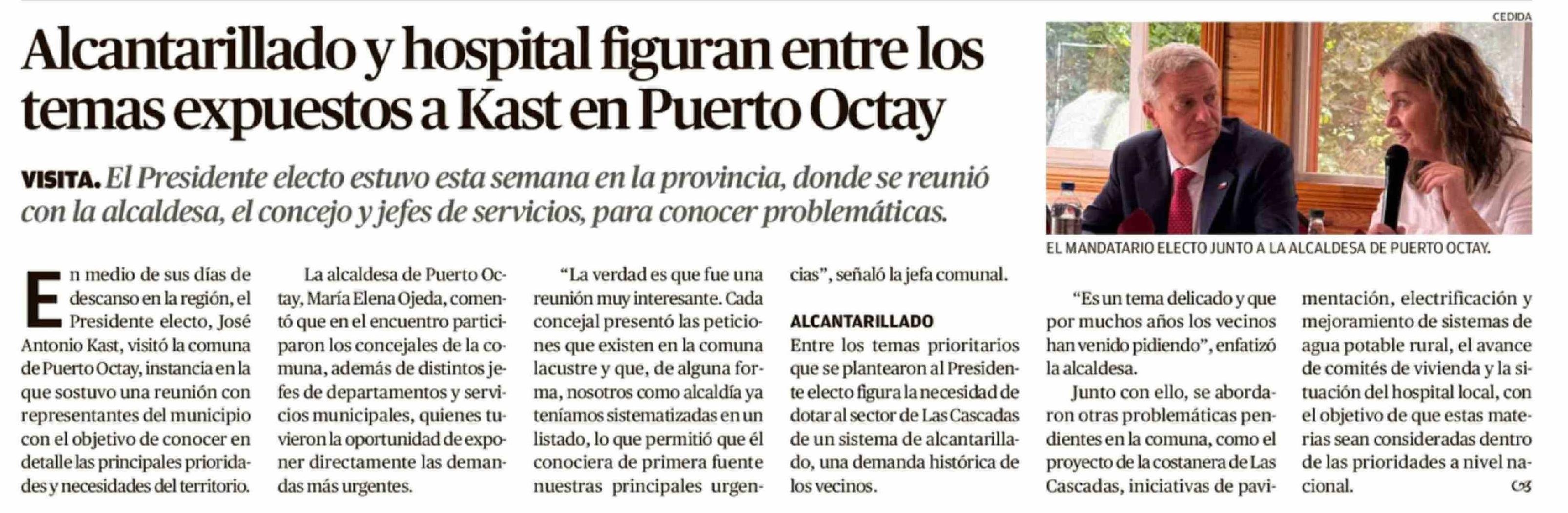 Alcantarillado y hospital figuran entre los temas expuestos a Kast en Puerto Octay