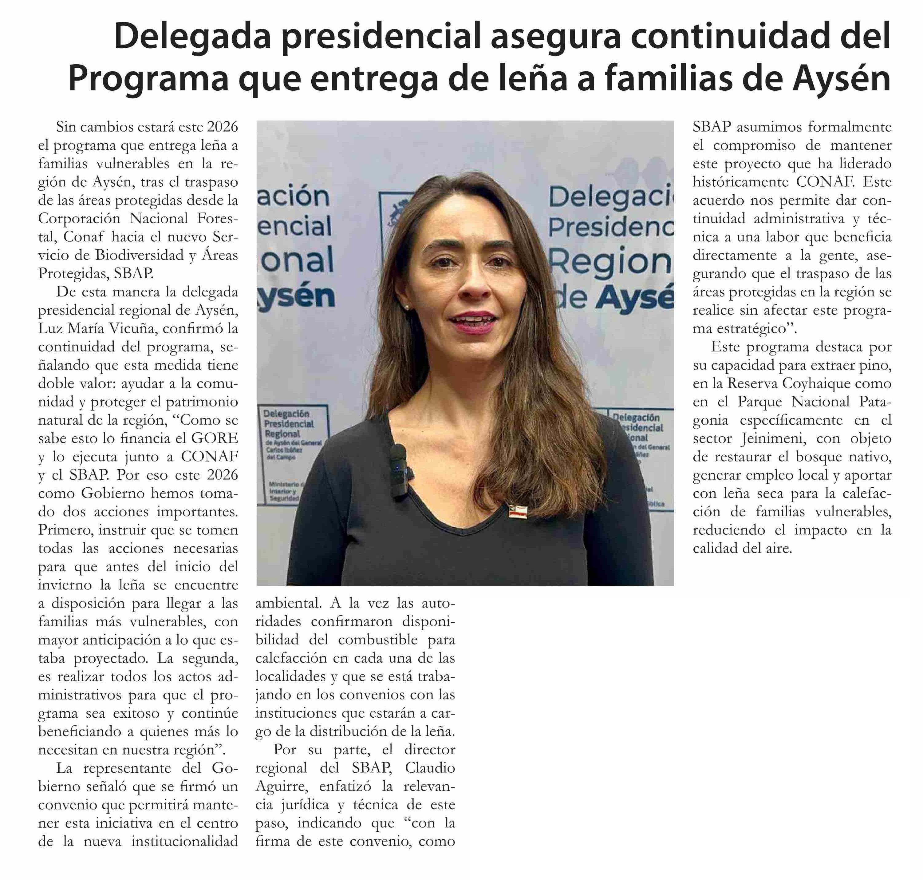 Delegada presidencial asegura continuidad del Programa que entrega de leña a familias de Aysén