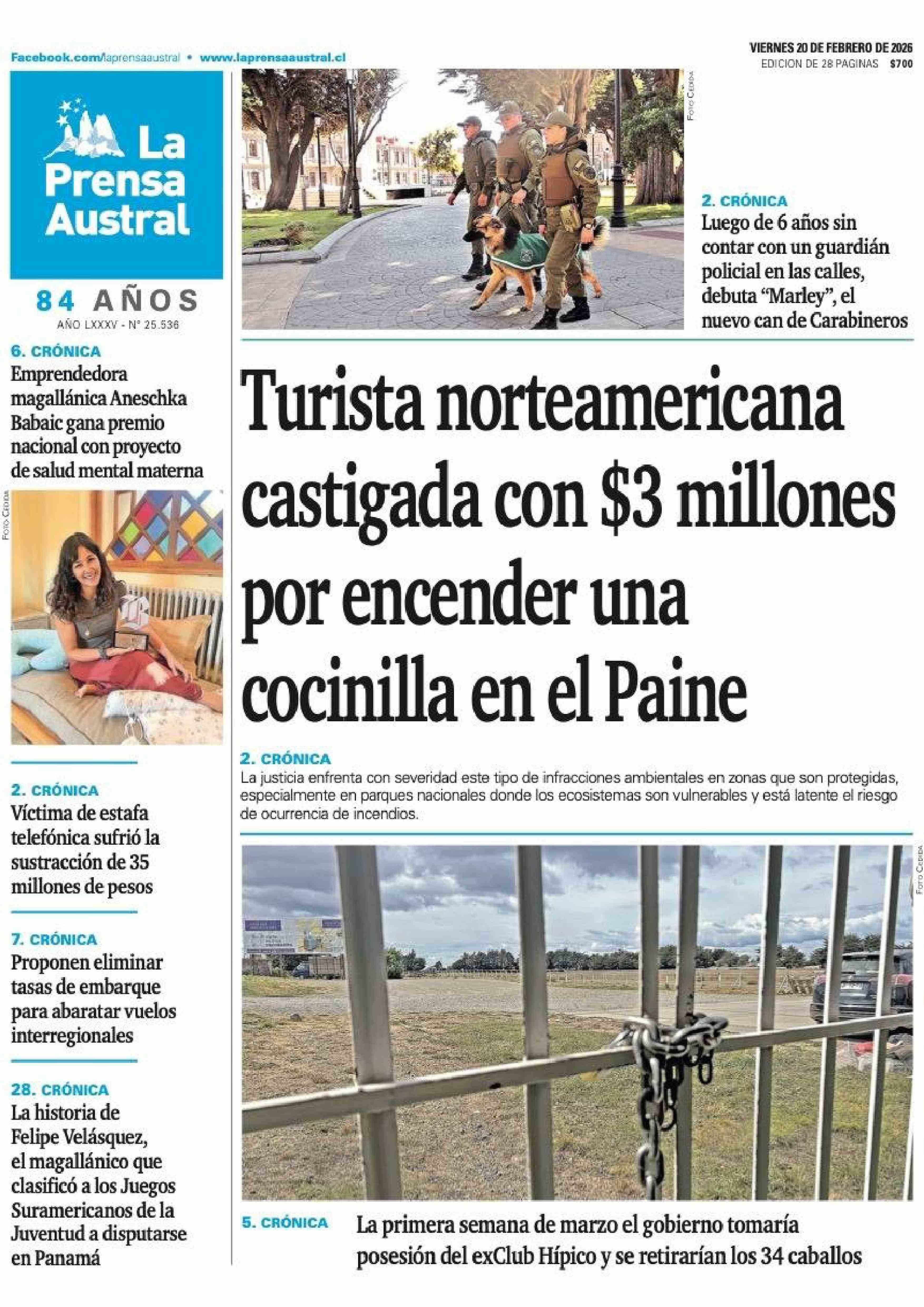 PORTADA LA PRENSA AUSTRAL CHILE
