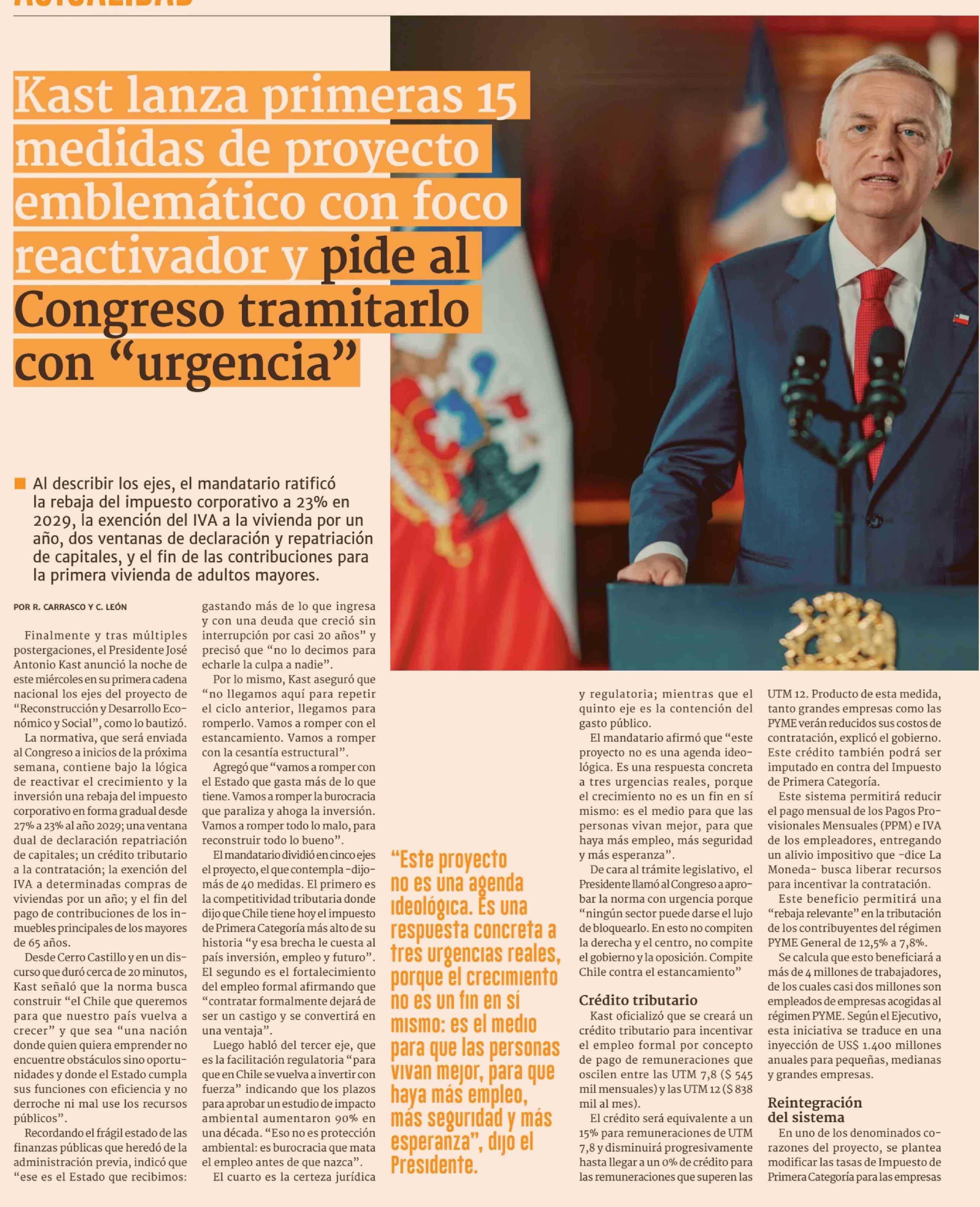 Kast lanza primeras 15 medidas de proyecto emblemático con foco reactivador y pide al Congreso tramitarlo con "urgencia"