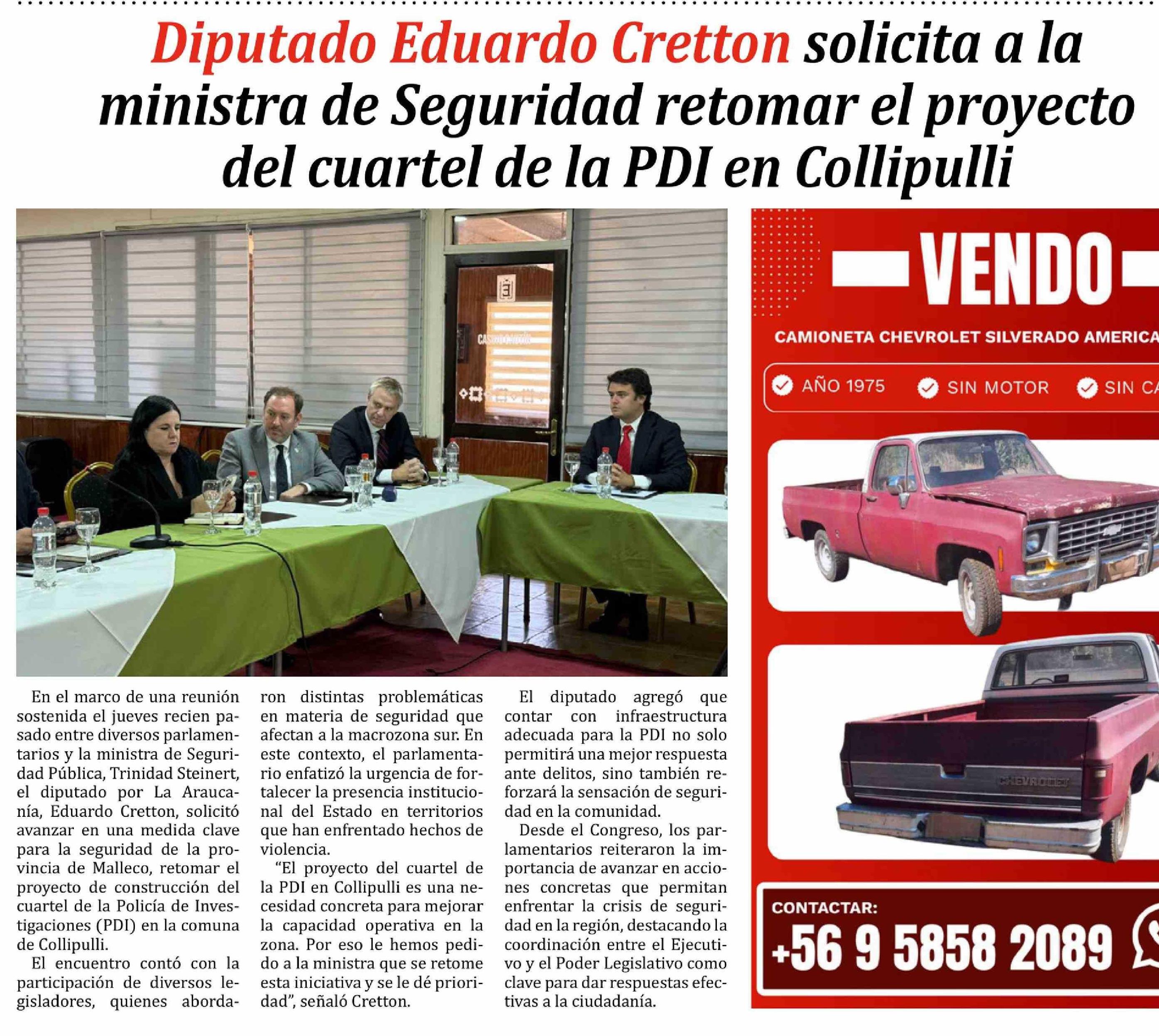 Diputado Eduardo Cretton solicita a la ministra de Seguridad retomar el proyecto del cuartel de la PDI en Collipulli
