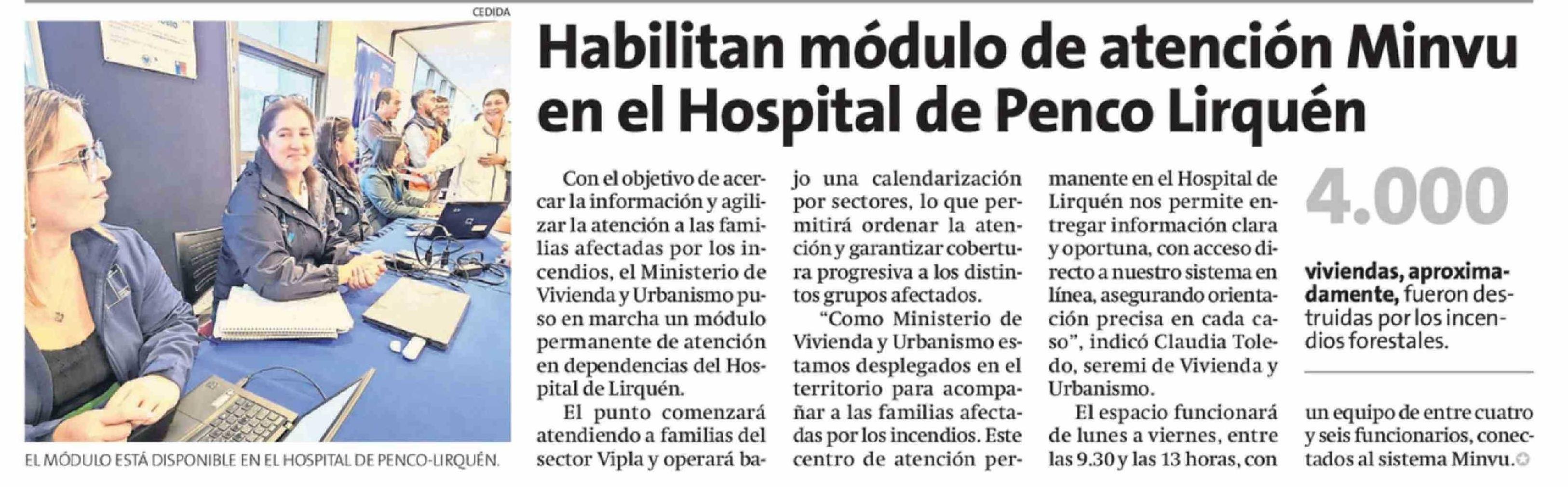 Habilitan módulo de atención Minvu en el Hospital de Penco Lirquen