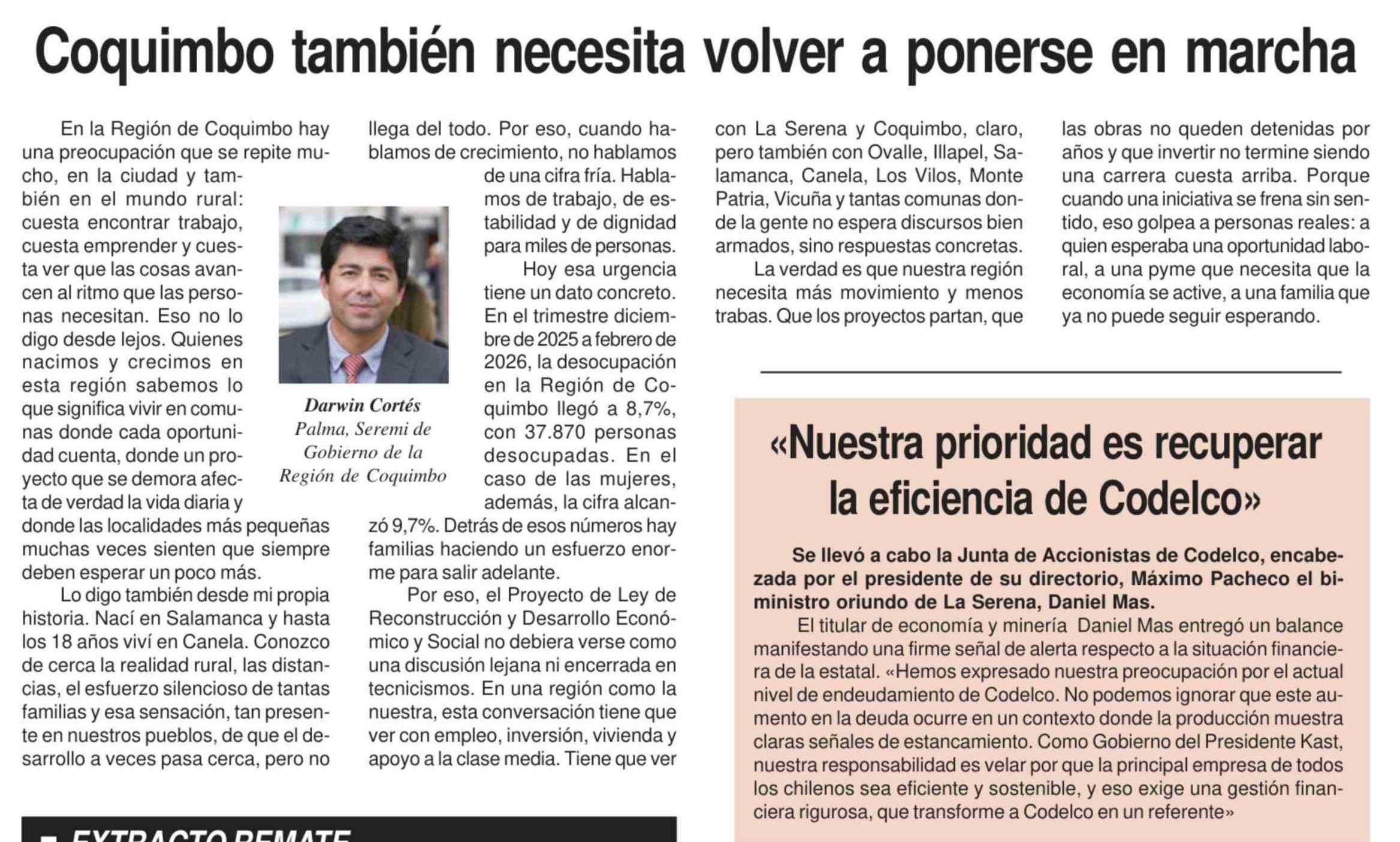 Coquimbo también necesita volver a ponerse en marcha