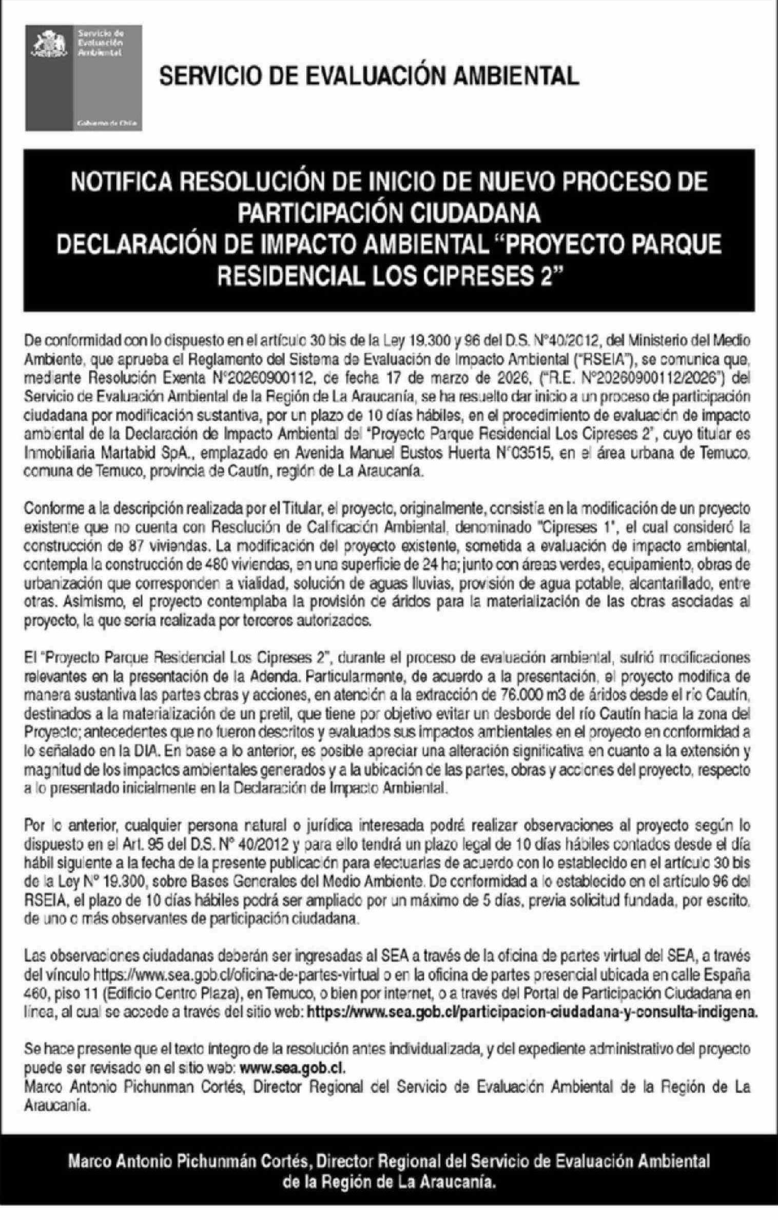 Extractos: SERVICIO DE EVALUACIÓN AMBIENTAL