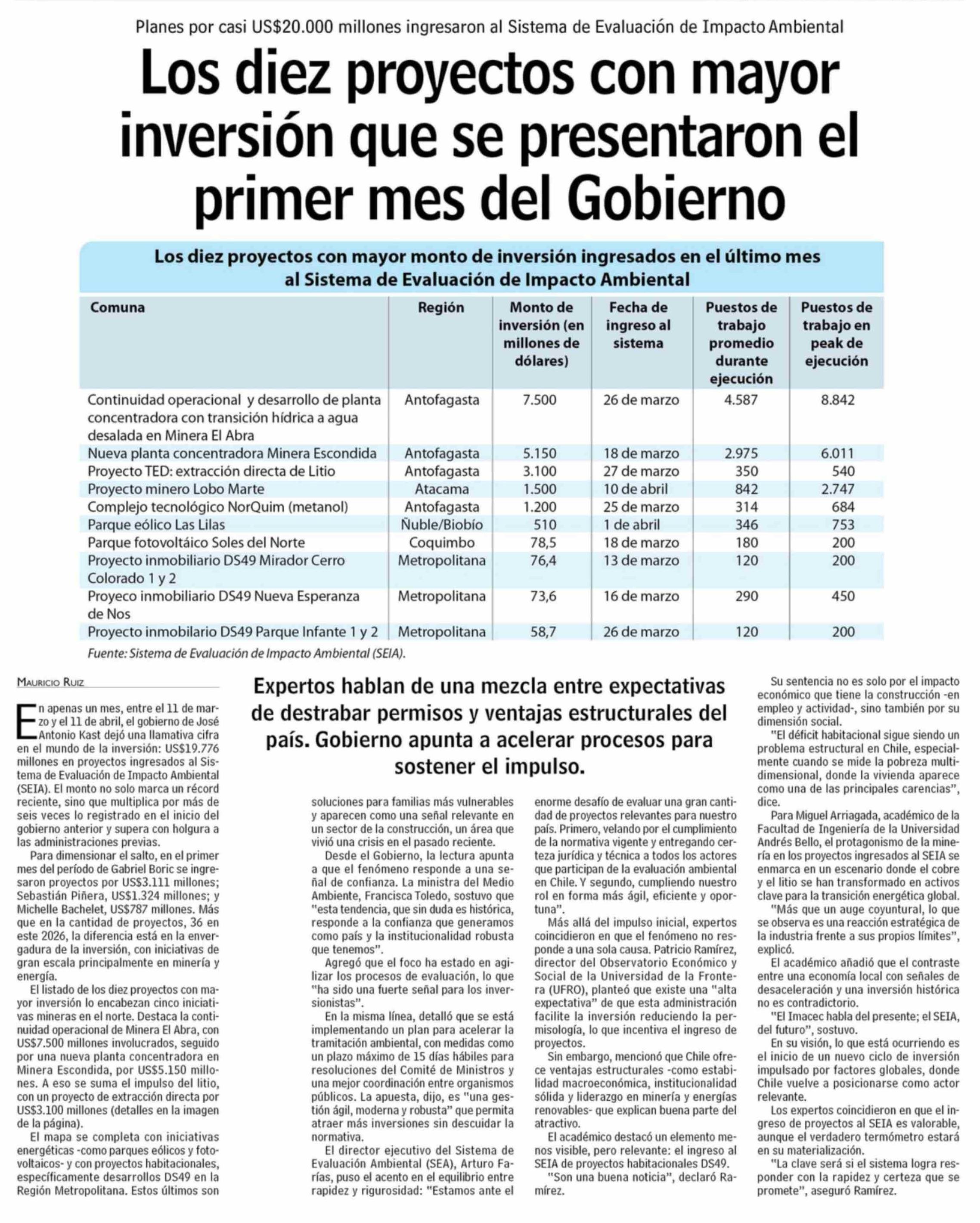 Título: Los diez proyectos con mayor inversión que se presentaron el primer mes del Gobierno