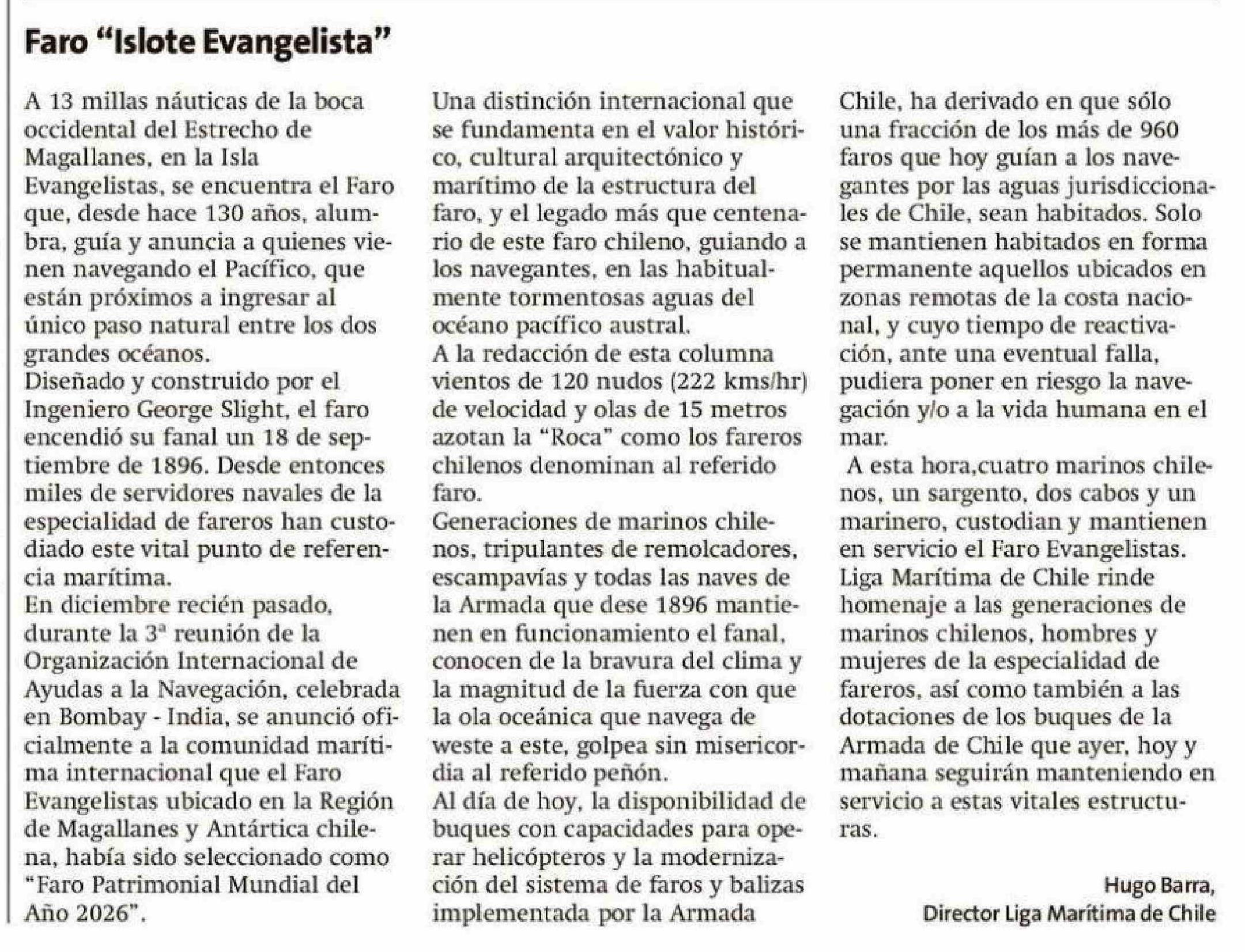 Cartas: Faro "Islote Evangelista"