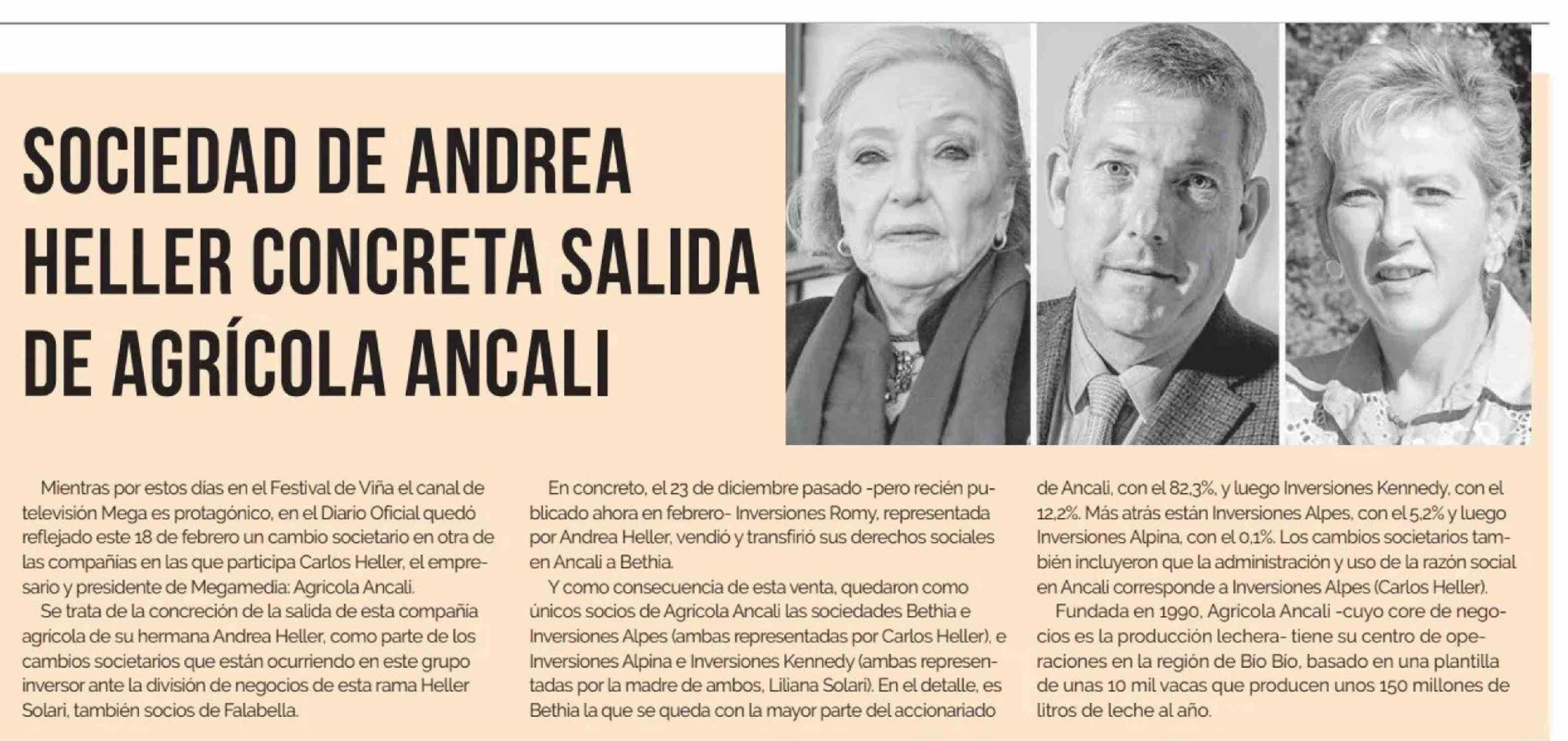 SOCIEDAD DE ANDREA HELLER CONCRETA SALIDA DE AGRÍCOLA ANCALI