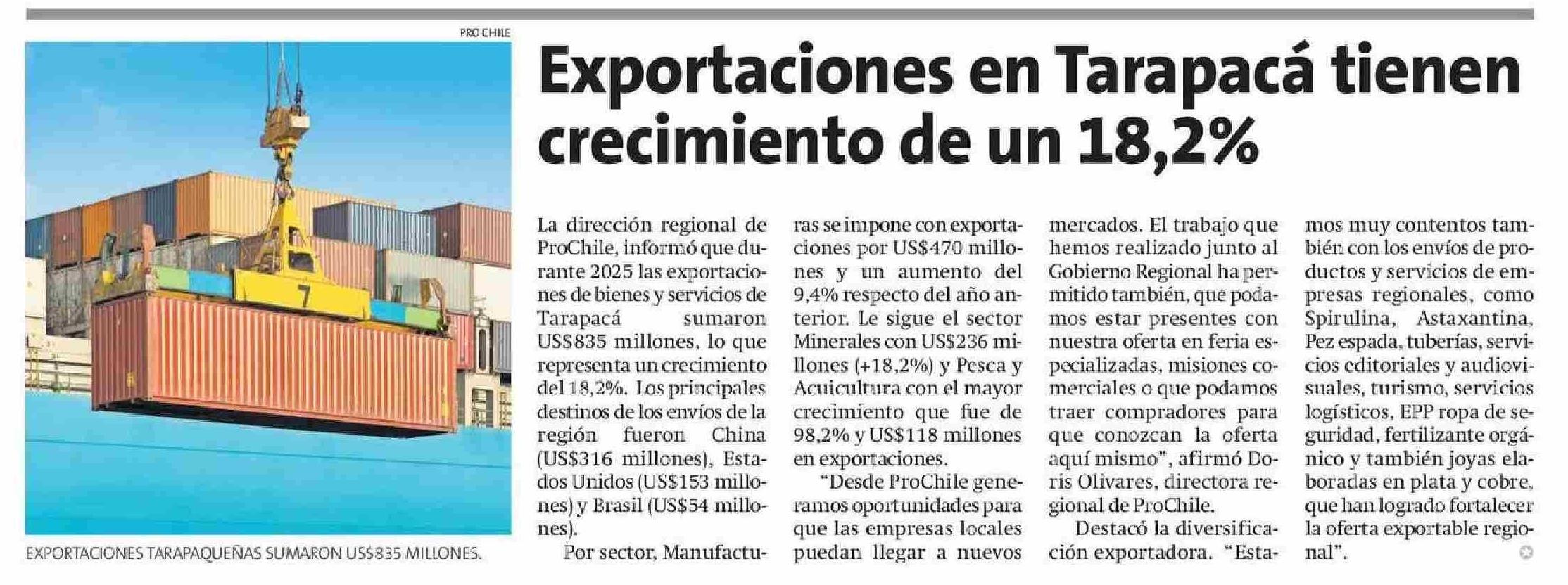 Exportaciones en Tarapacá tienen crecimiento de un 18,2%