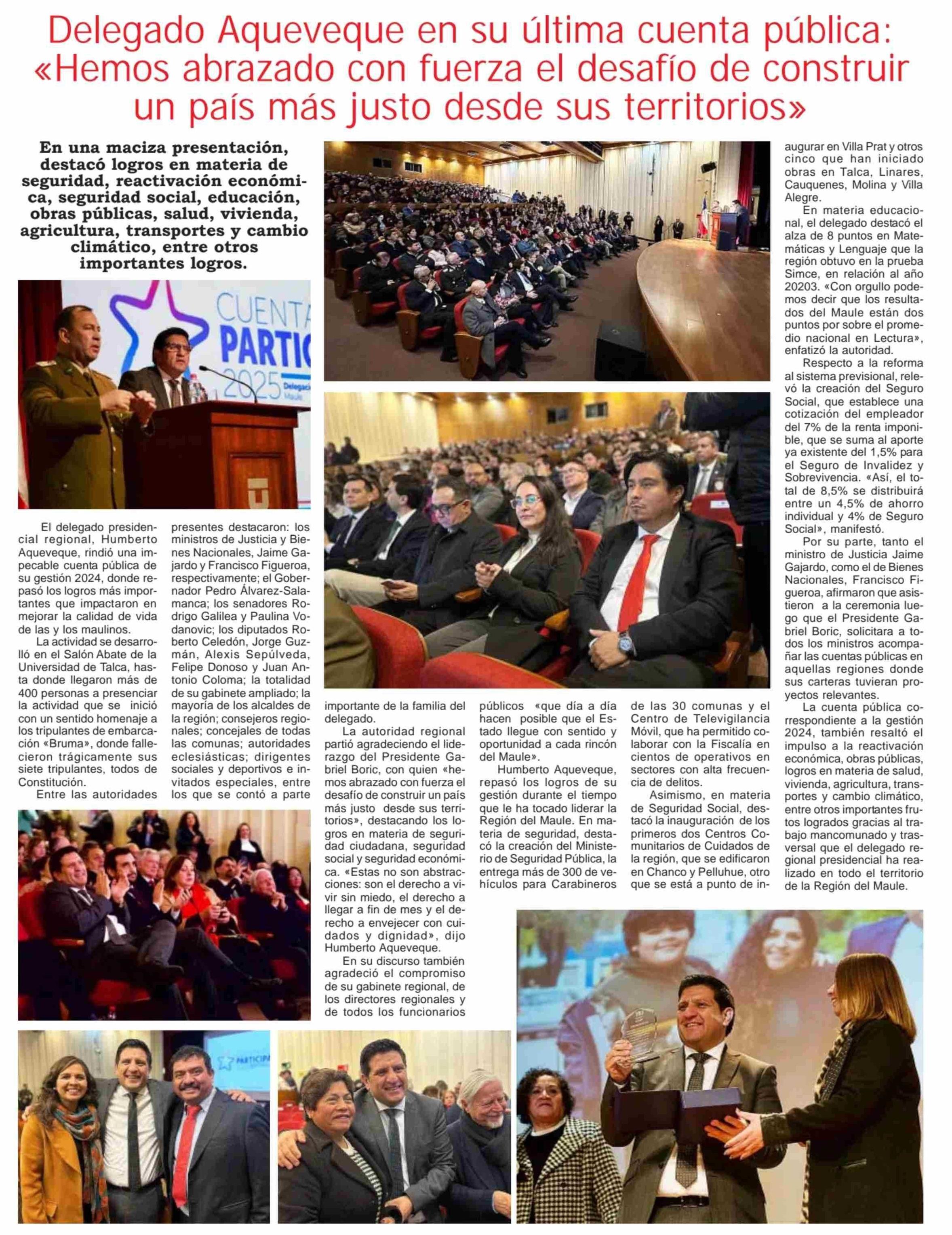 Delegado Aqueveque en su última cuenta pública: «Hemos abrazado con fuerza el desafío de construir un país más justo desde sus territorios»