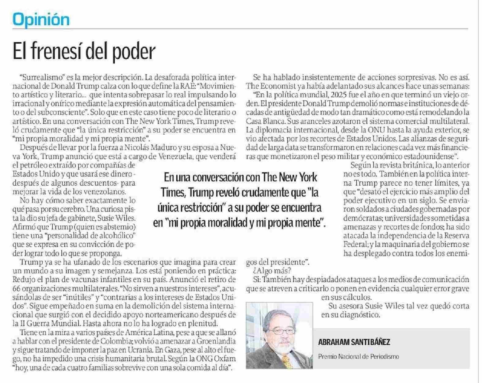 Columnas de Opinión: El frenesí del poder