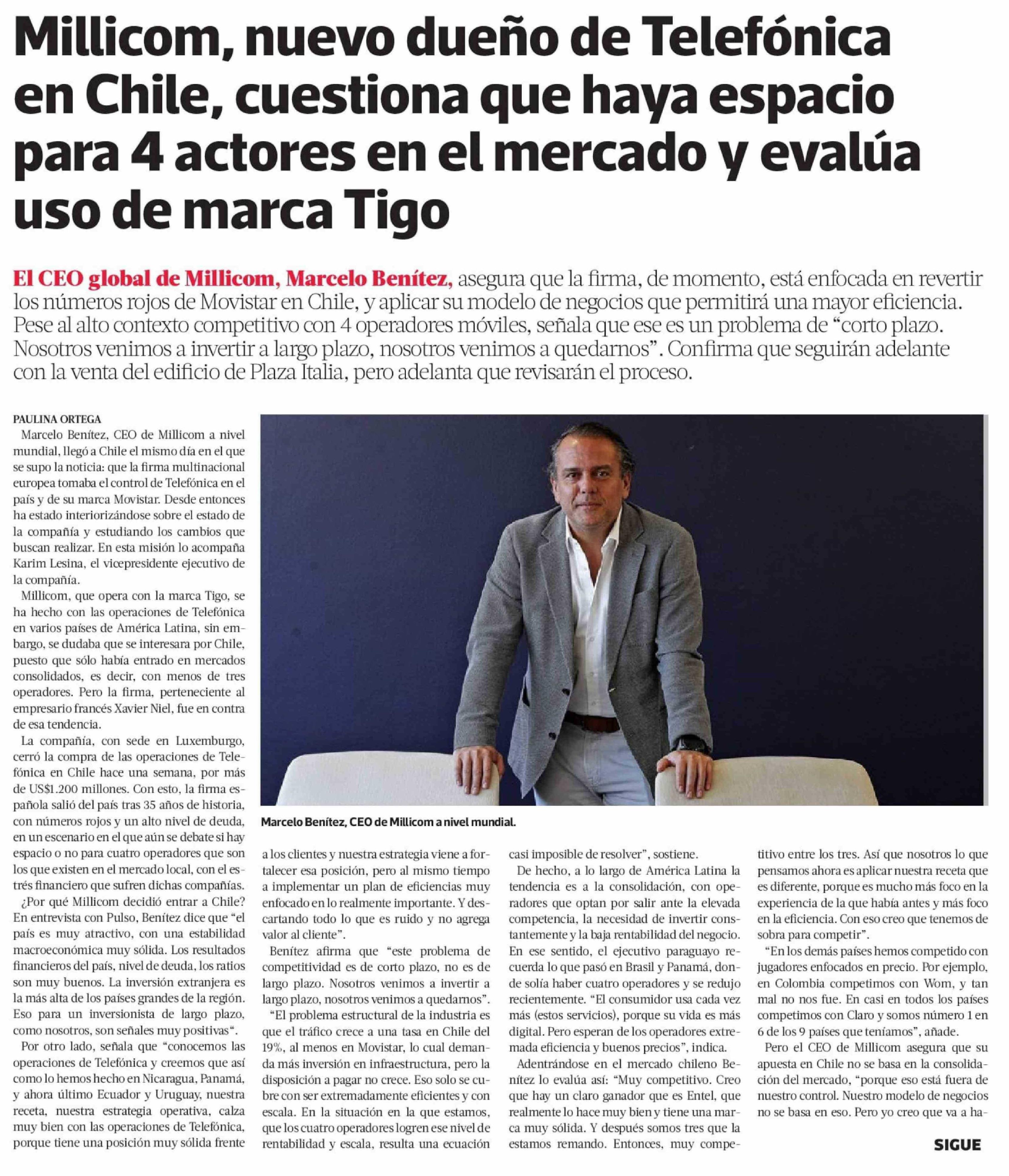 Millicom, nuevo dueño de Telefónica en Chile, cuestiona que haya espacio para 4 actores en el mercado y evalúa uso de marca Tigo