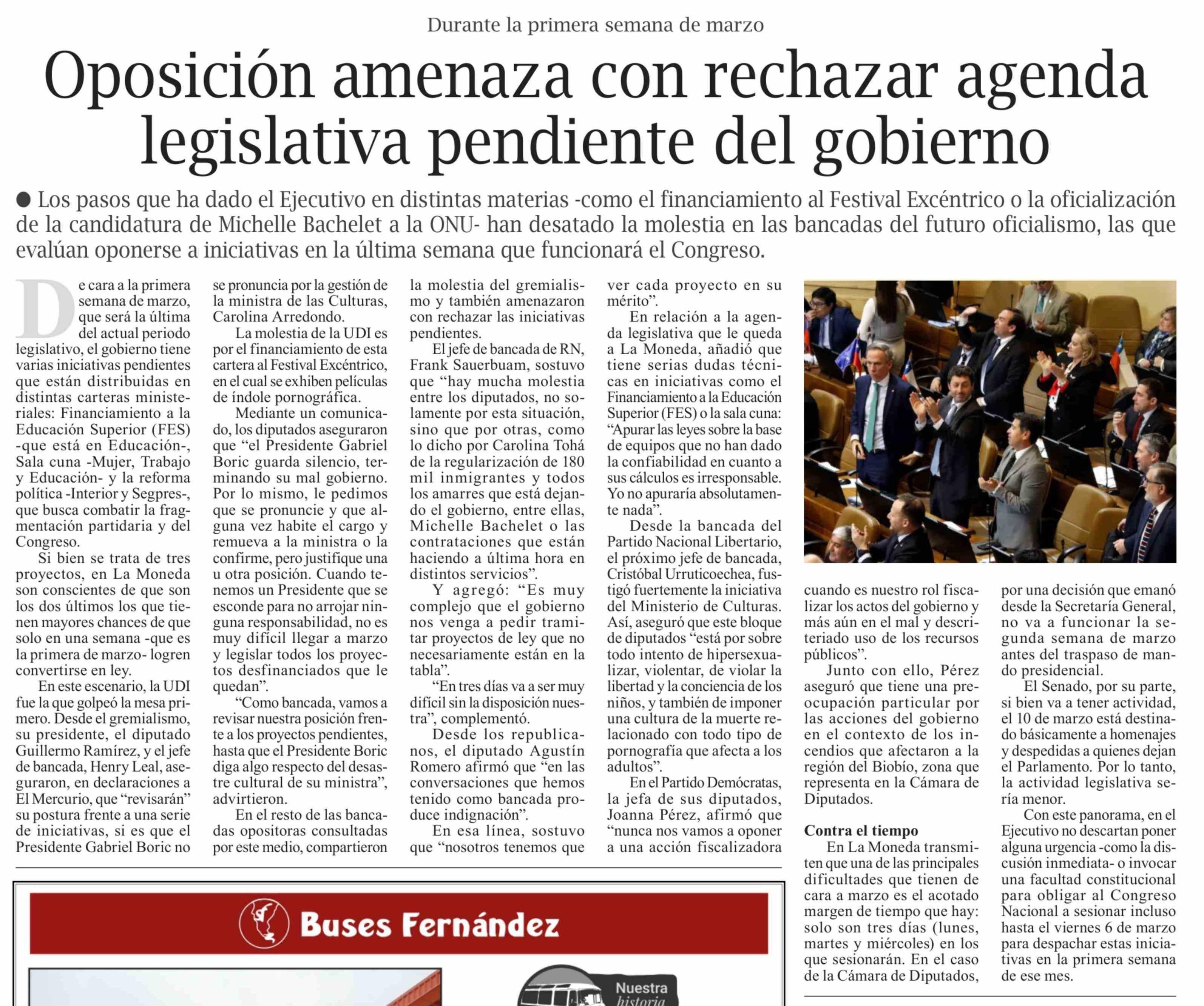 Oposición amenaza con rechazar agenda legislativa pendiente del gobierno