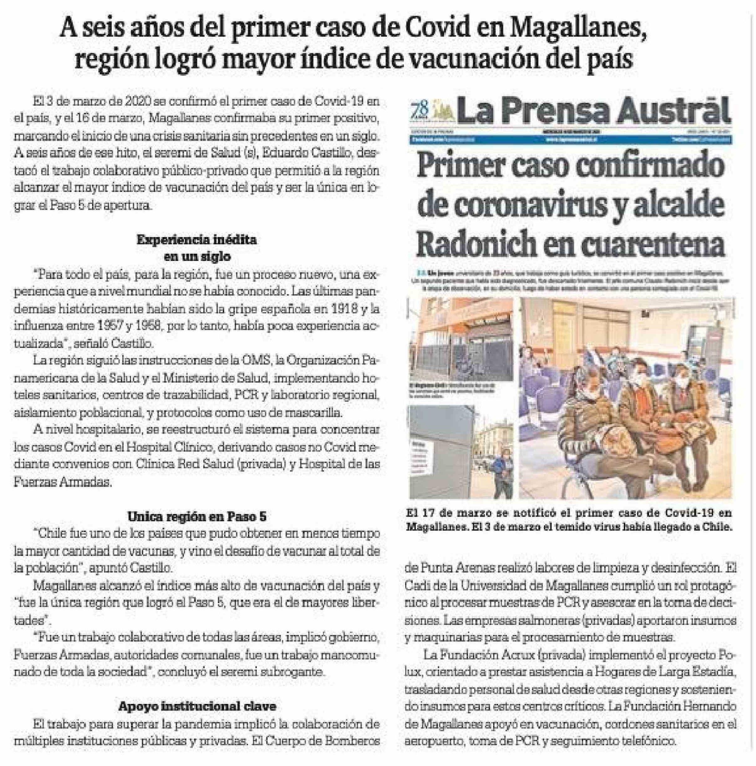A seis años del primer caso de Covid en Magallanes, región logró mayor índice de vacunación del país