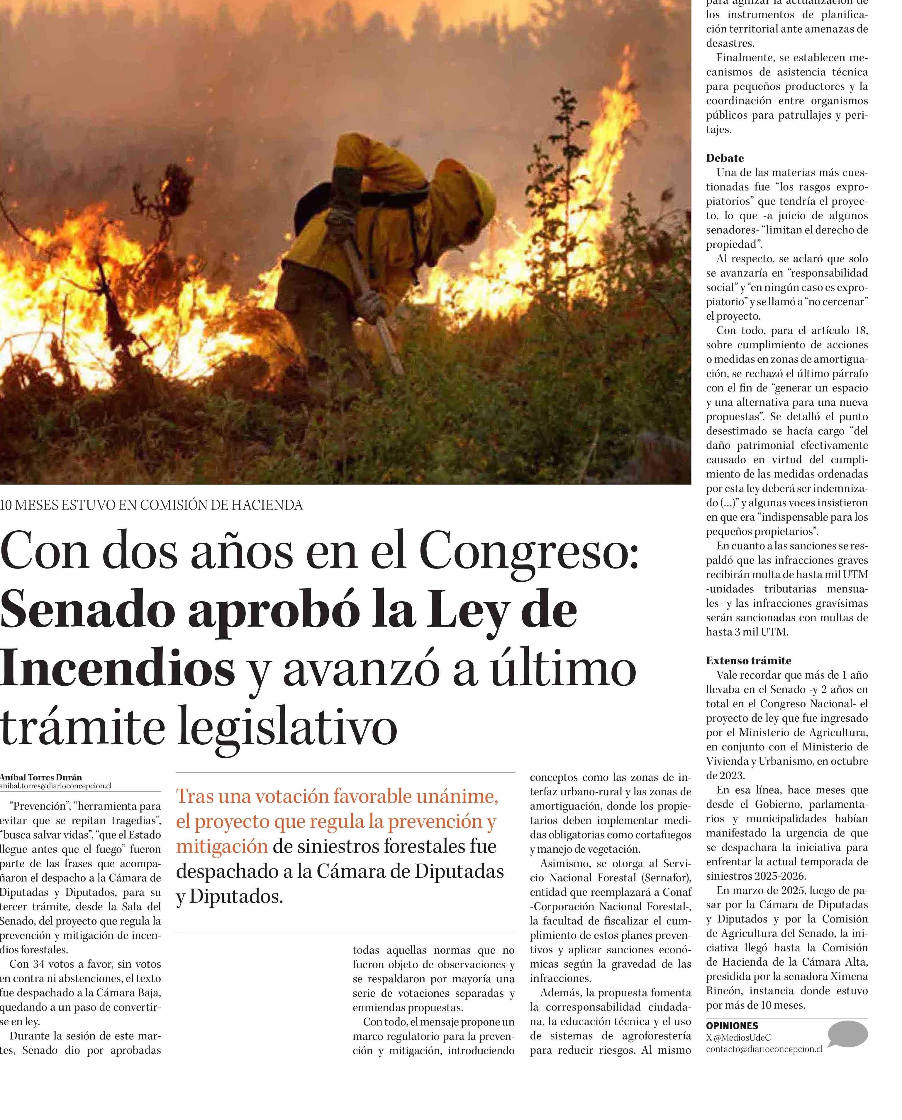 Título: Con dos años en el Congreso: Senado aprobó la Ley de Incendios y avanzó a último trámite legislativo