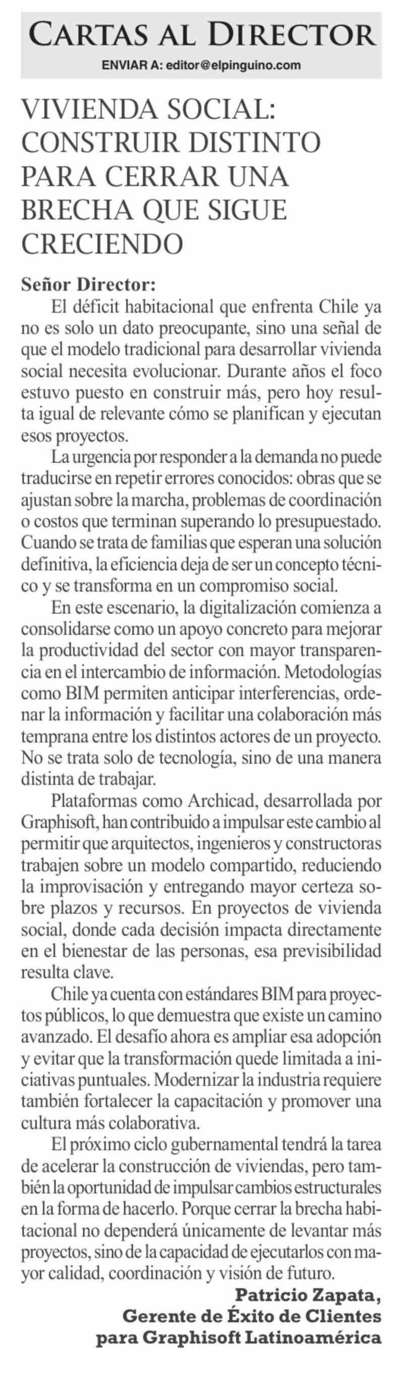 Cartas: VIVIENDA SOCIAL: CONSTRUIR DISTINTO PARA CERRAR UNA BRECHA QUE SIGUE CRECIENDO