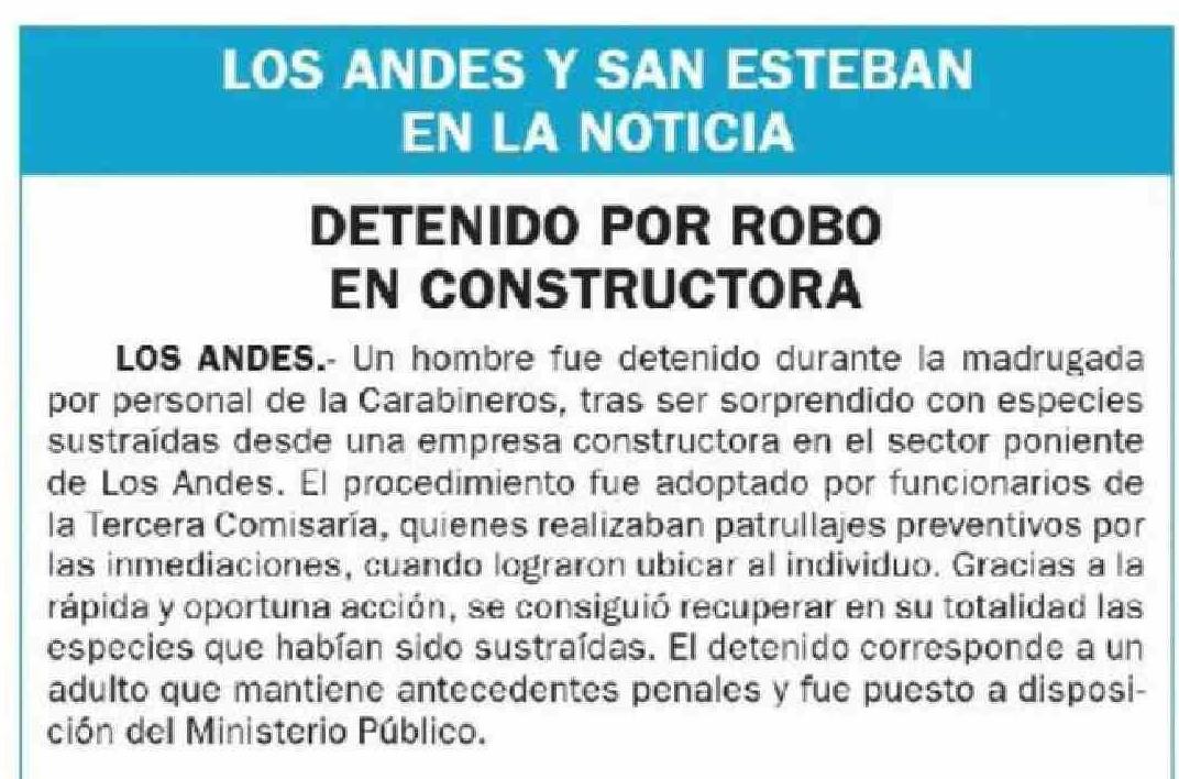 DETENIDO POR ROBO EN CONSTRUCTORA