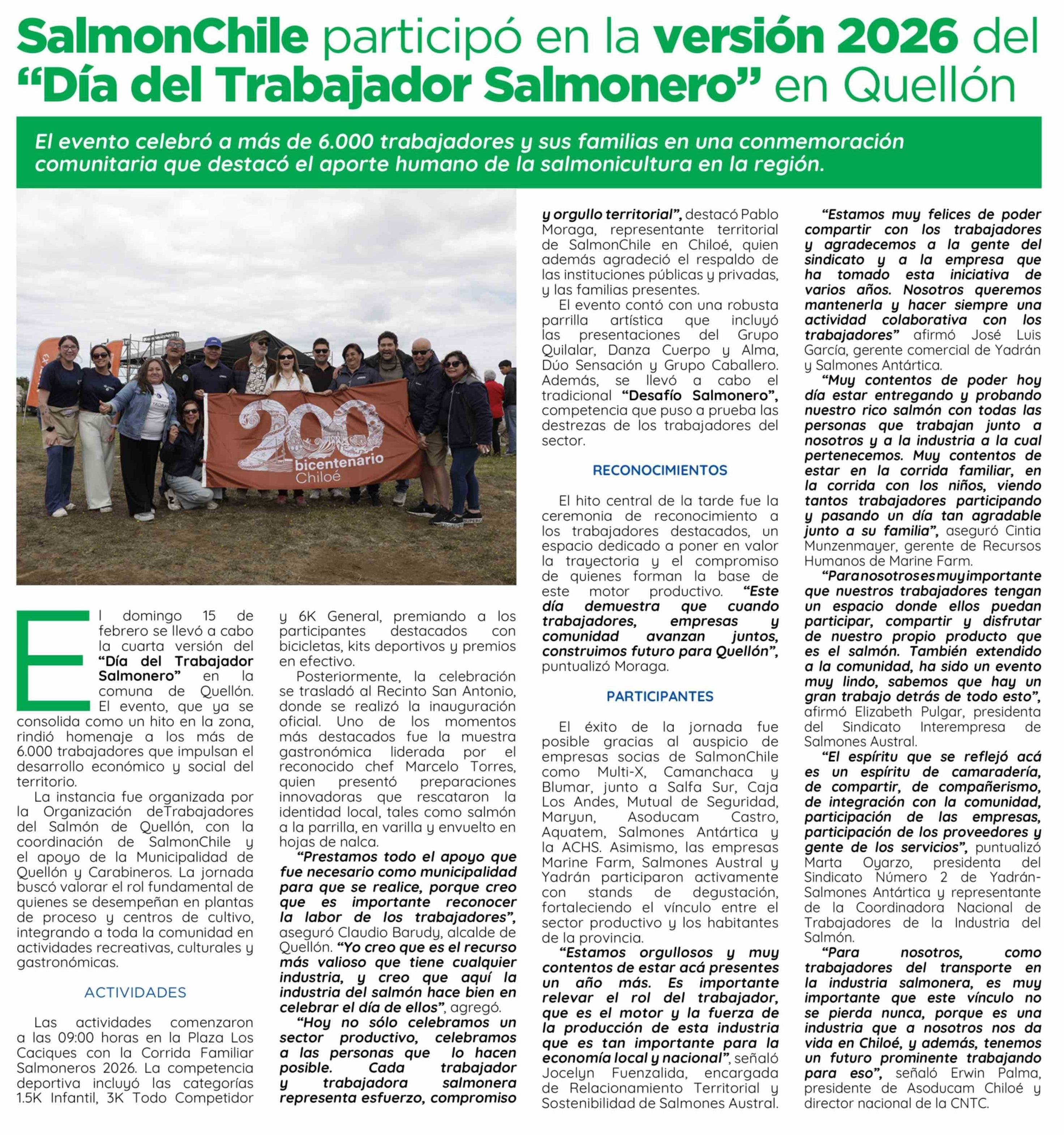 SalmonChile participó en la versión 2026 del "Día del Trabajador Salmonero" en Quellón