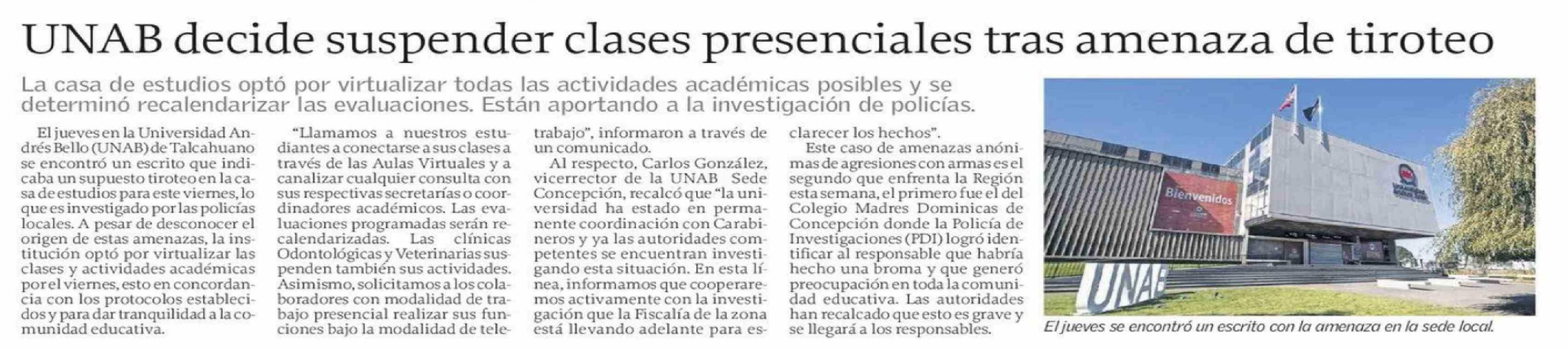 UNAB decide suspender clases presenciales tras amenaza de tiroteo