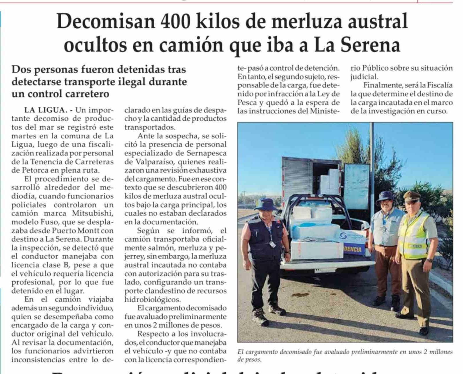 Decomisan 400 kilos de merluza austral ocultos en camión que iba a La Serena