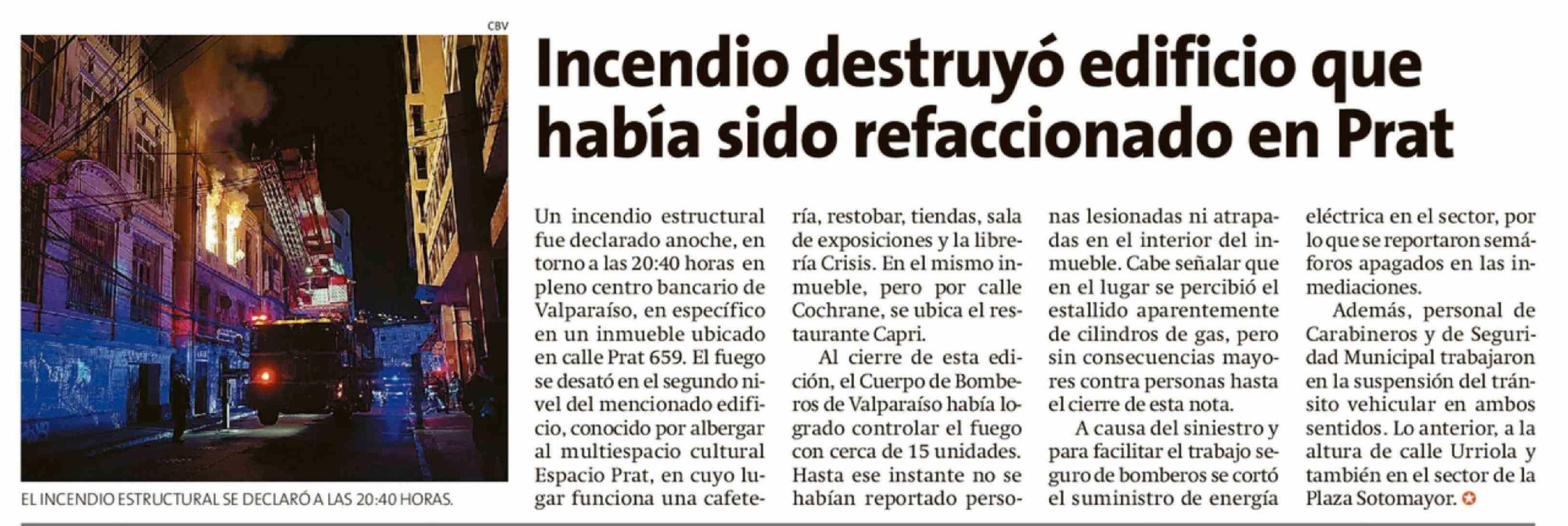 Incendio destruyó edificio que había sido refaccionado en Prat