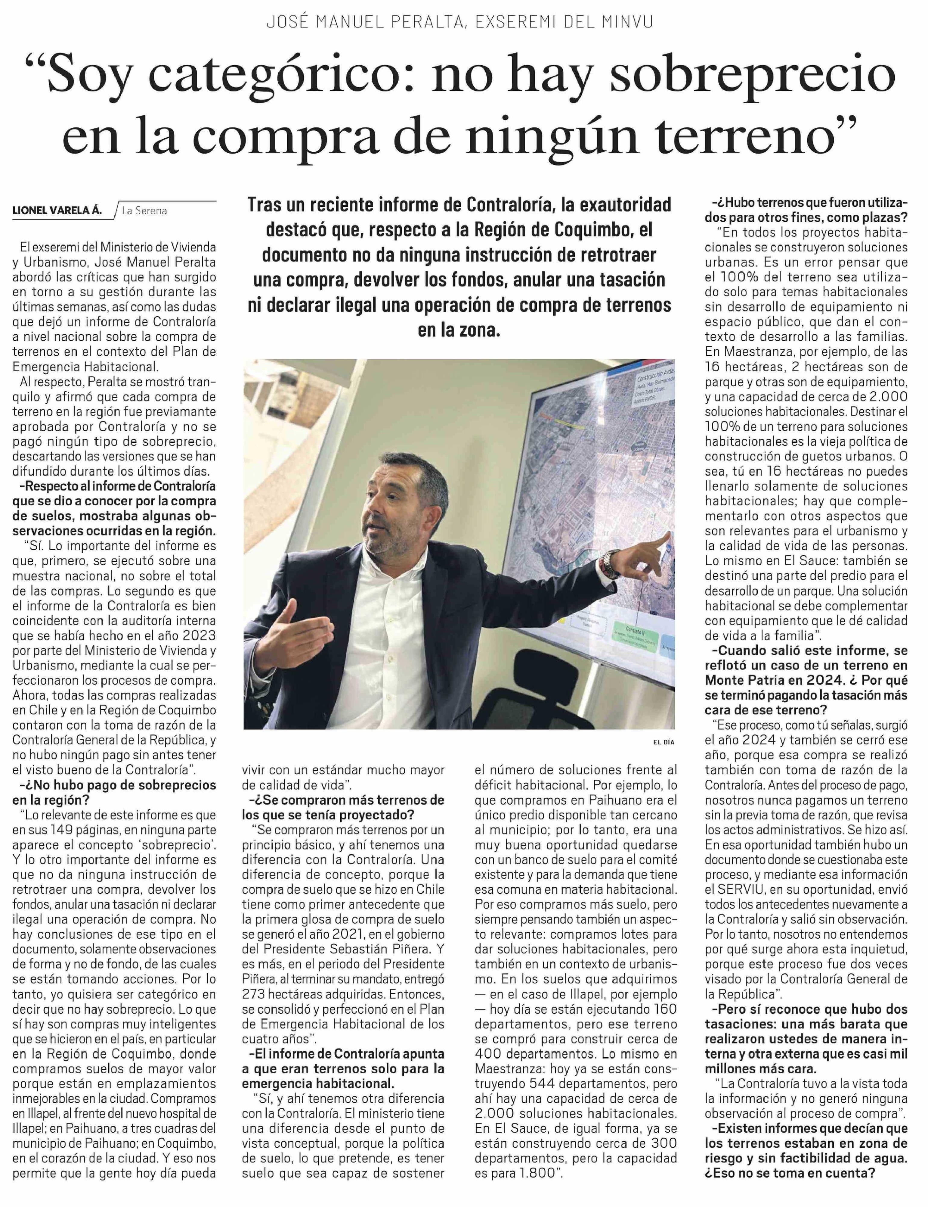 "Soy categórico: no hay sobreprecio en la compra de ningún terreno"