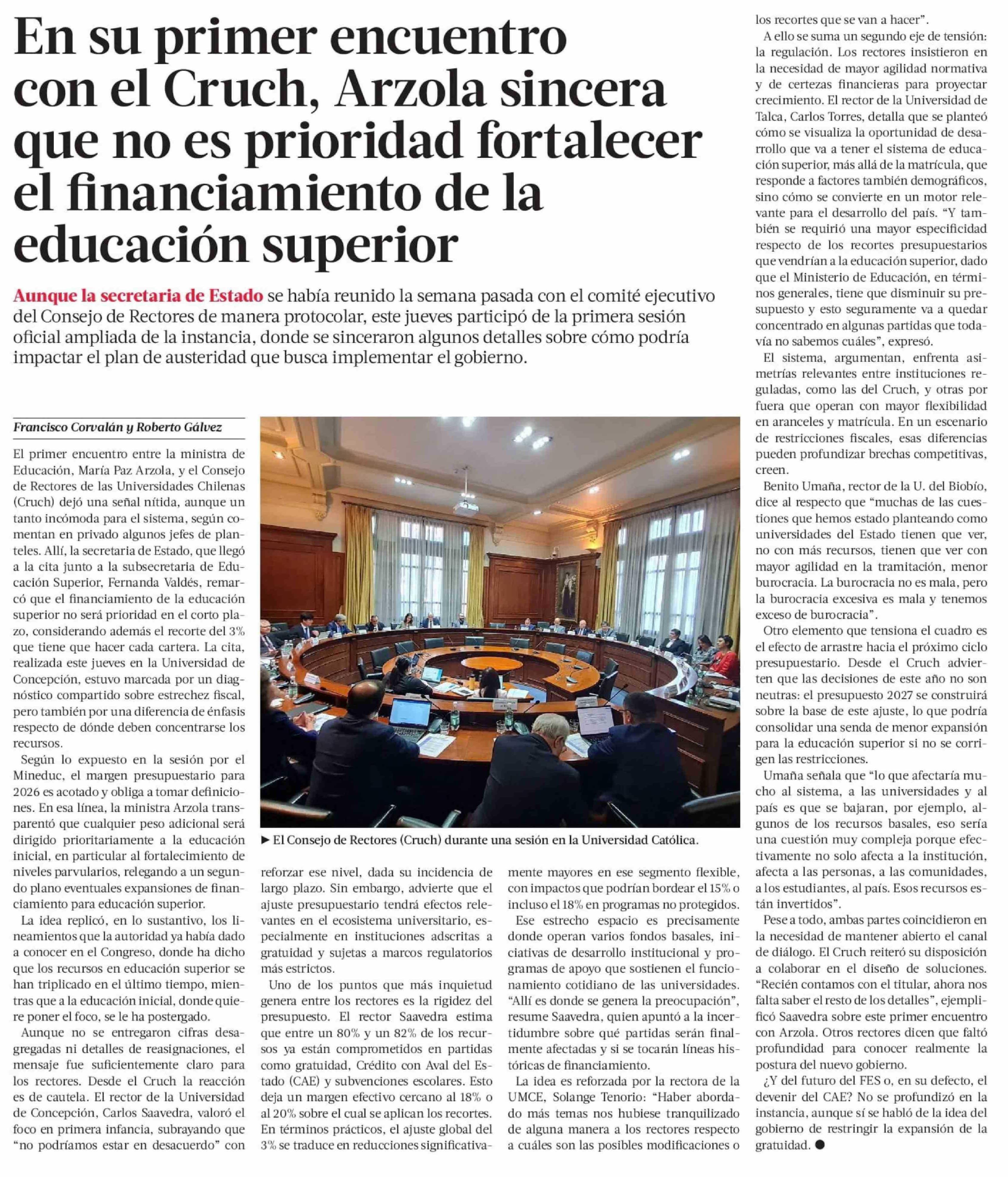 En su primer encuentro con el Cruch, Arzola sincera que no es prioridad fortalecer el financiamiento de la educación superior
