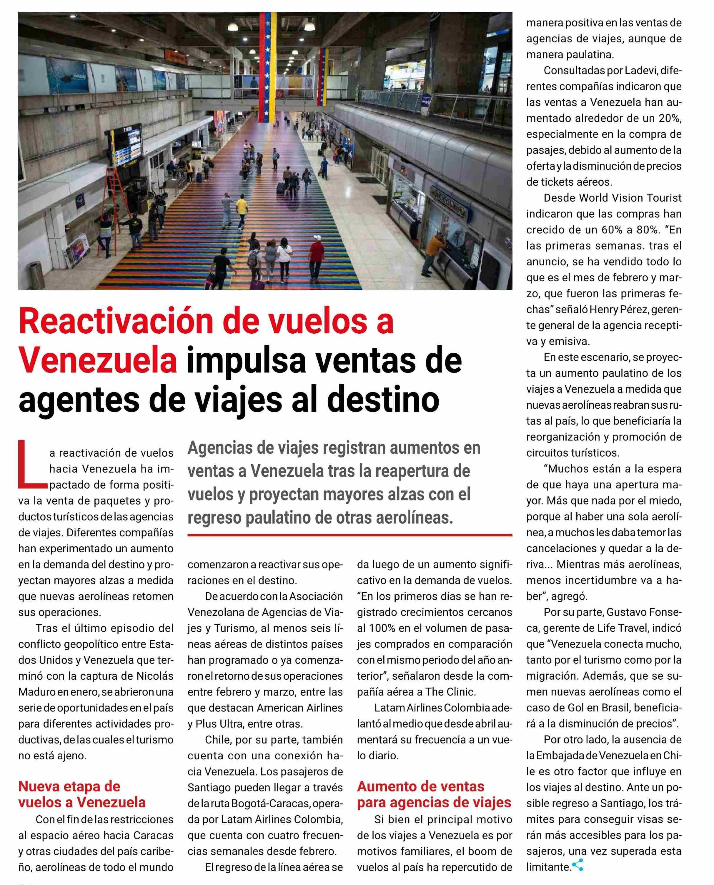 Reactivación de vuelos a Venezuela impulsa ventas de agentes de viajes al destino