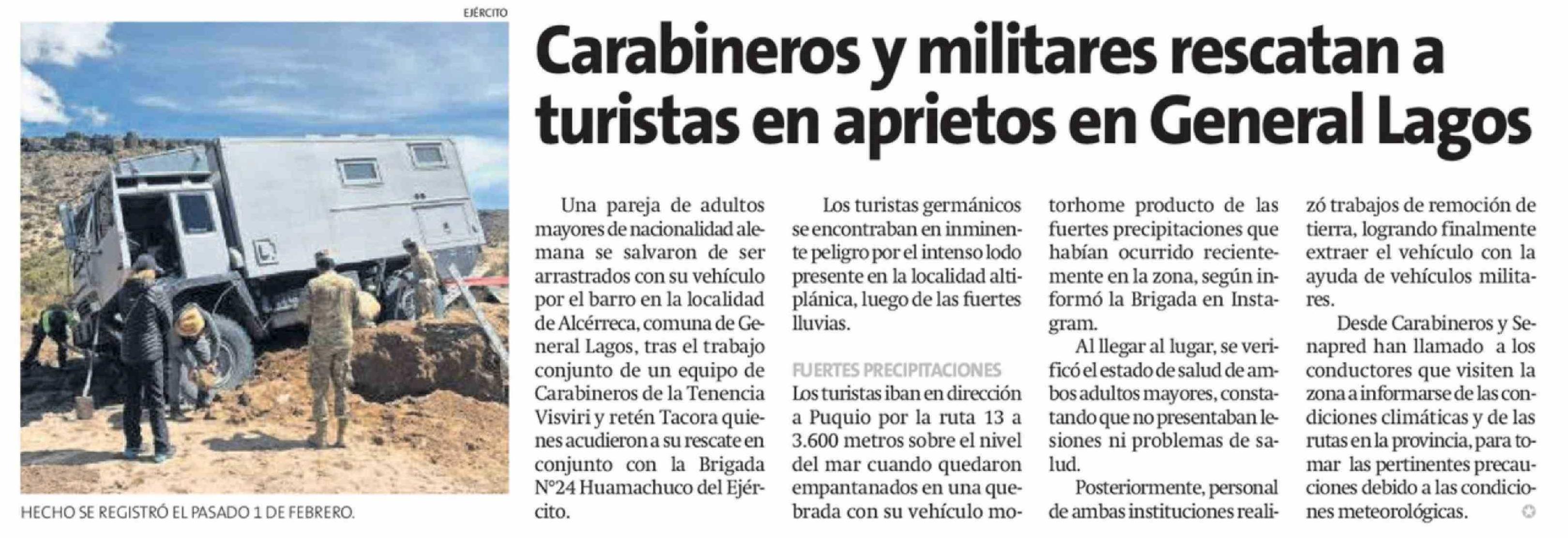 Carabineros y militares rescatan a turistas en aprietos en General Lagos