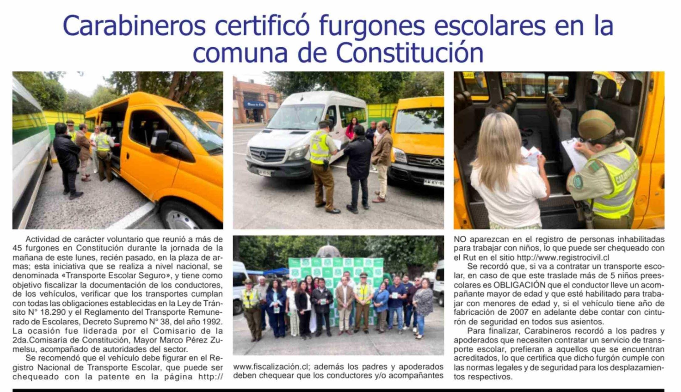 Carabineros certificó furgones escolares en la comuna de Constitución