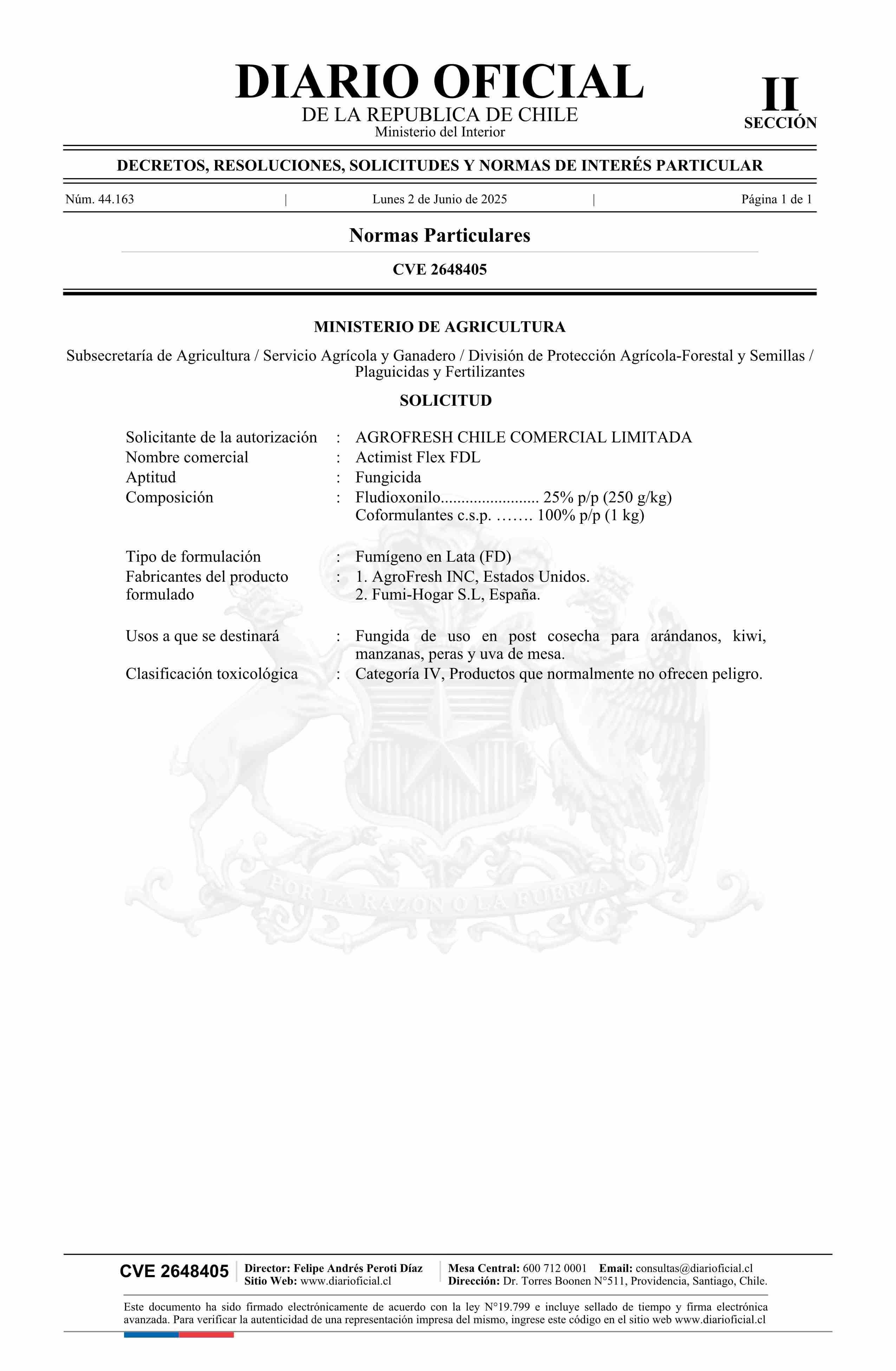 Solicitud Agrofresh Chile Comercial Limitada