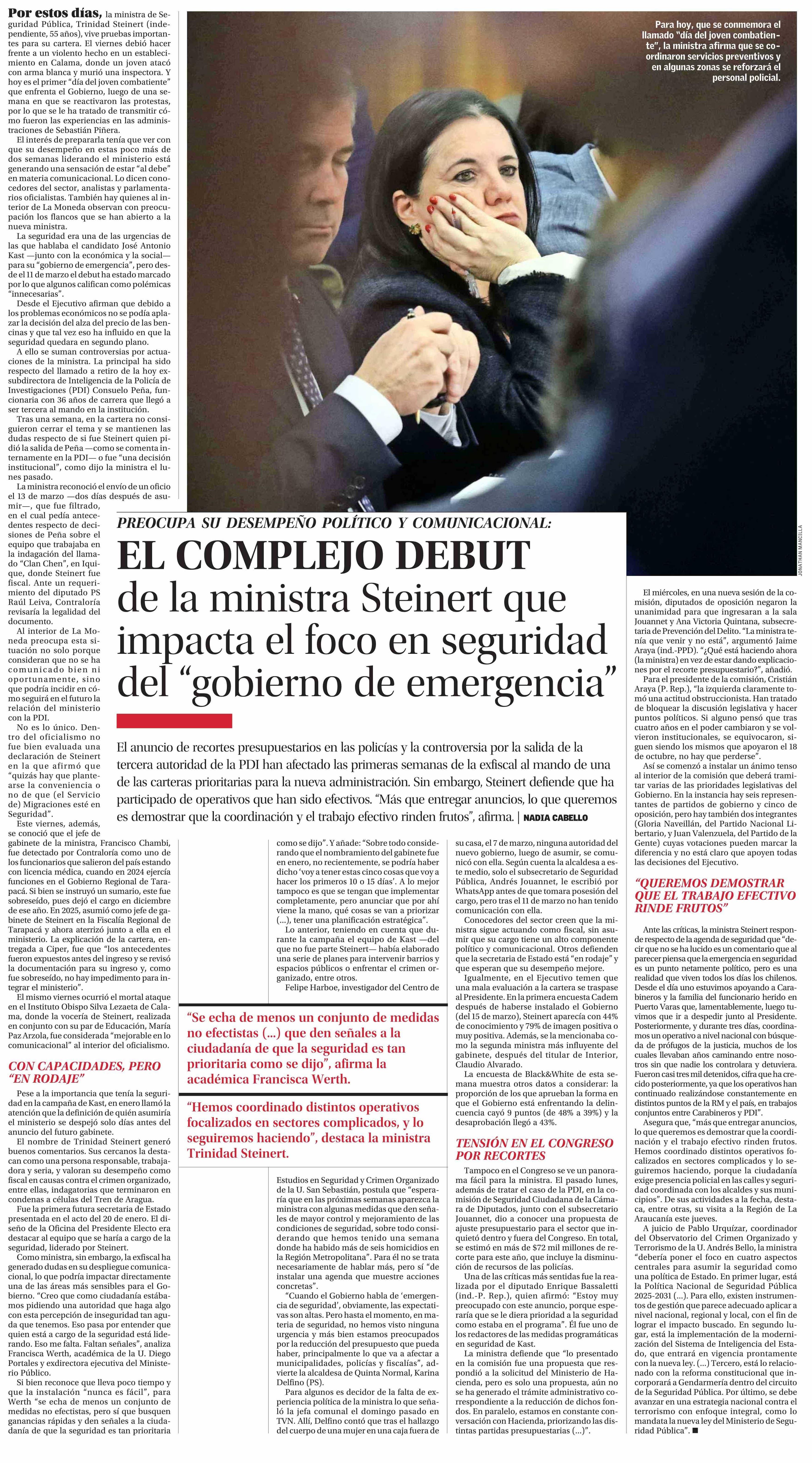 EL COMPLEJO DEBUT de la ministra Steinert que impacta el foco en seguridad del “gobierno de emergencia”