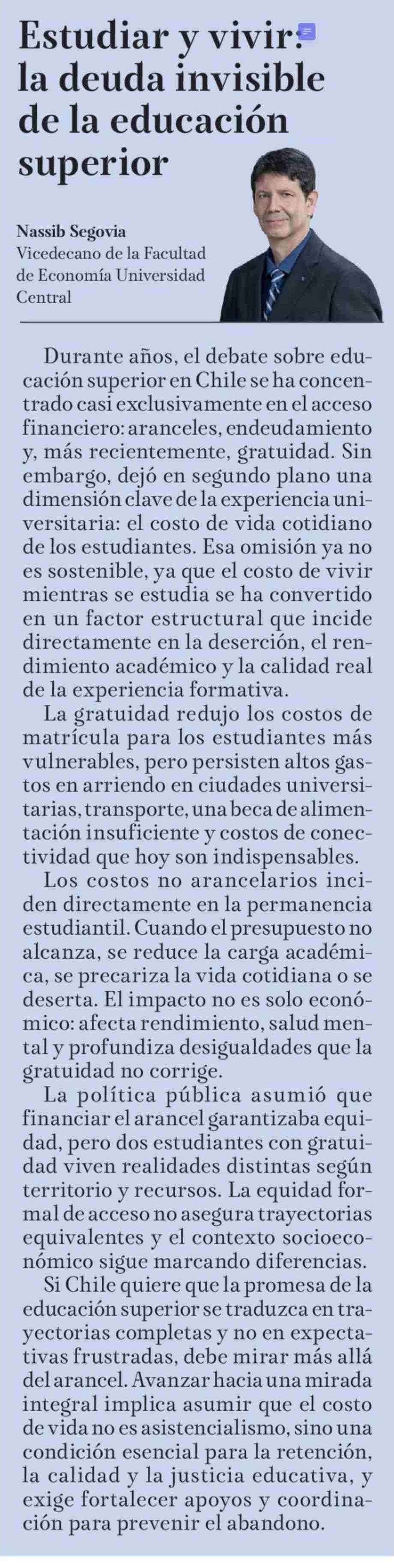 Columnas de Opinión: Estudiar y vivir? la deuda invisible de la educación superior