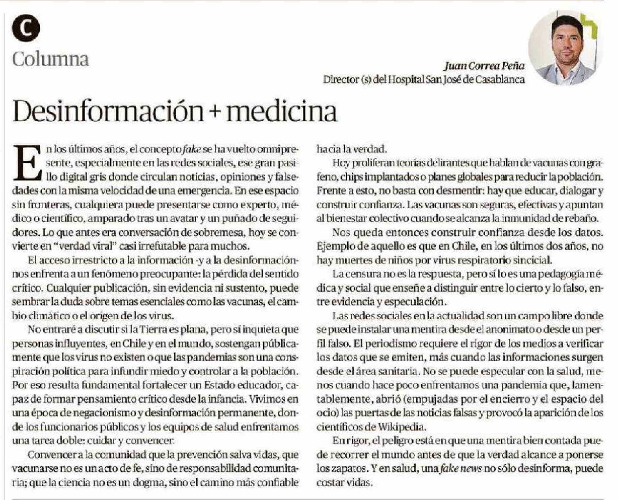 Columnas de Opinión: Desinformación + medicina