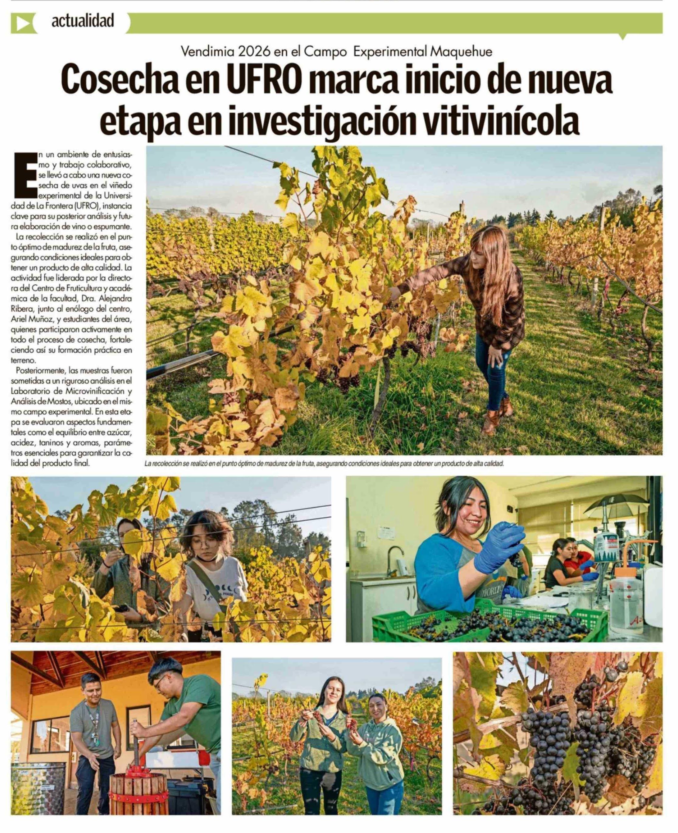 Cosecha en UFRO marca inicio de nueva etapa en investigación vitivinícola