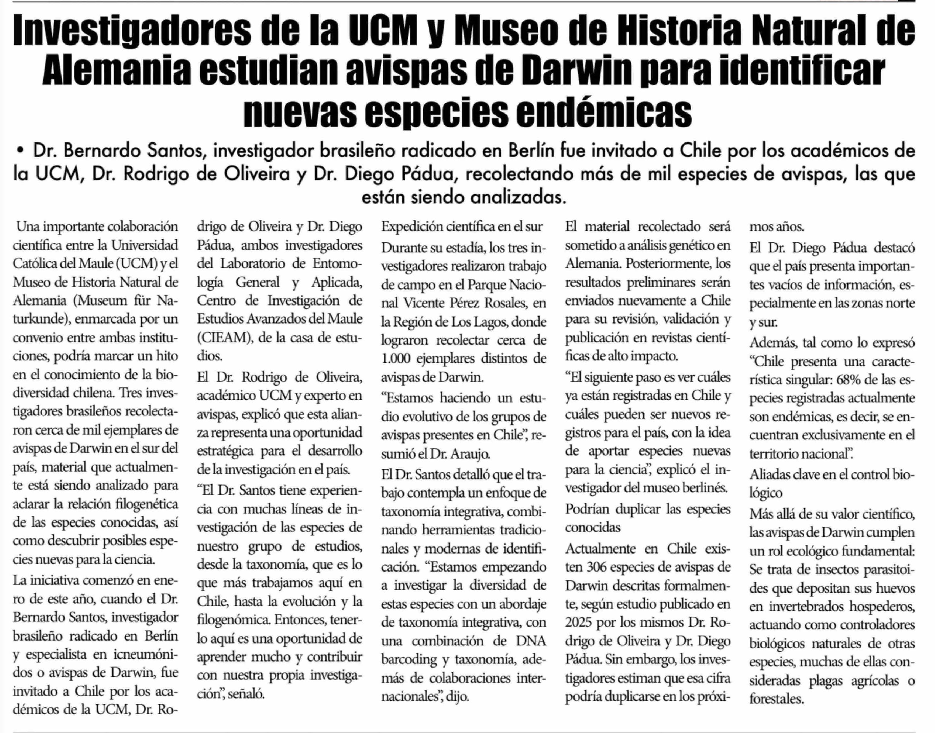 Investigadores de la UCM y Museo de Historia Natural de Alemania estudian avispas de Darwin para identificar nuevas especies endémicas