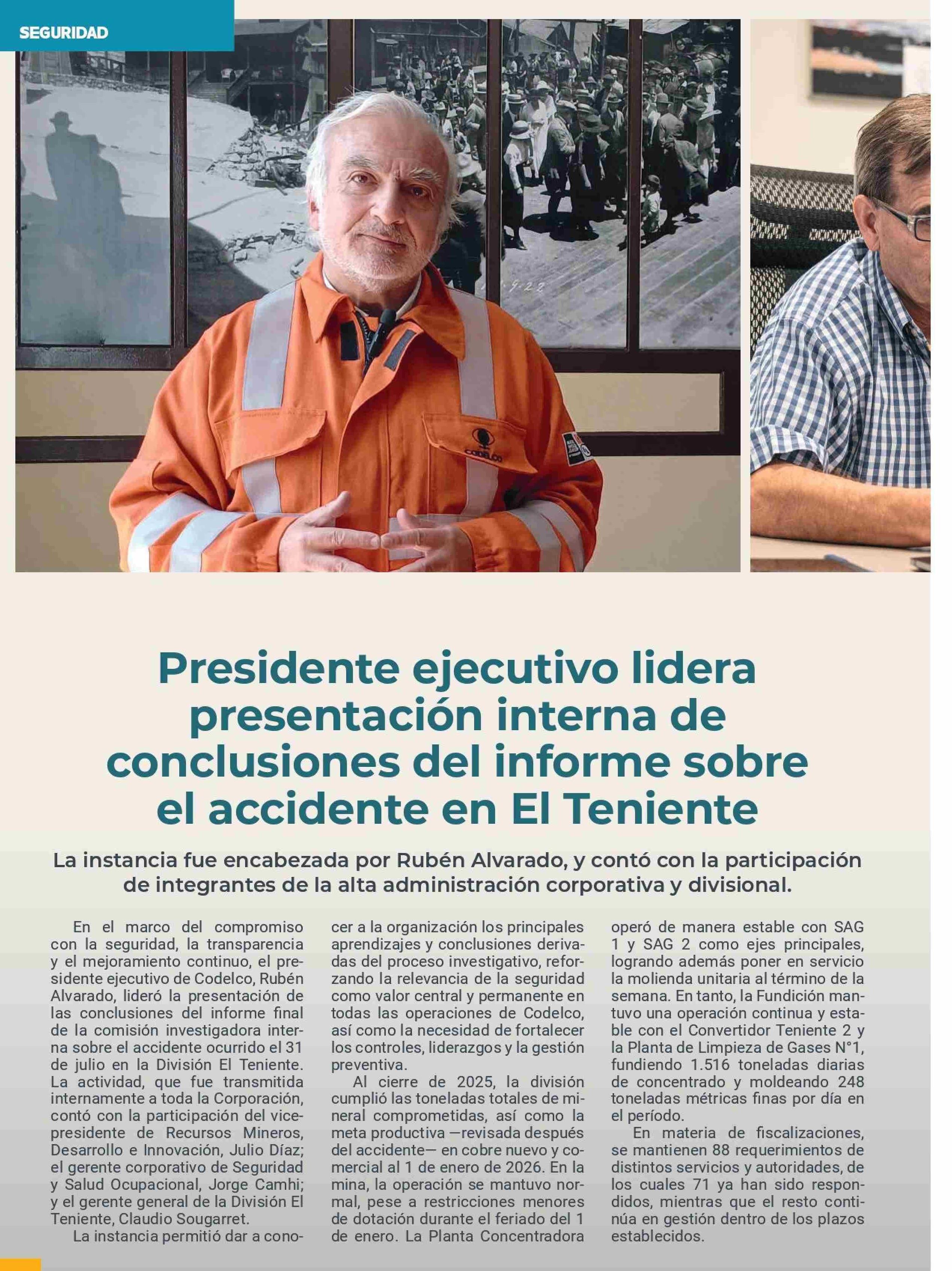 | Título: | Presidente ejecutivo lidera presentación interna de conclusiones del informe sobre el accidente en El Teniente |