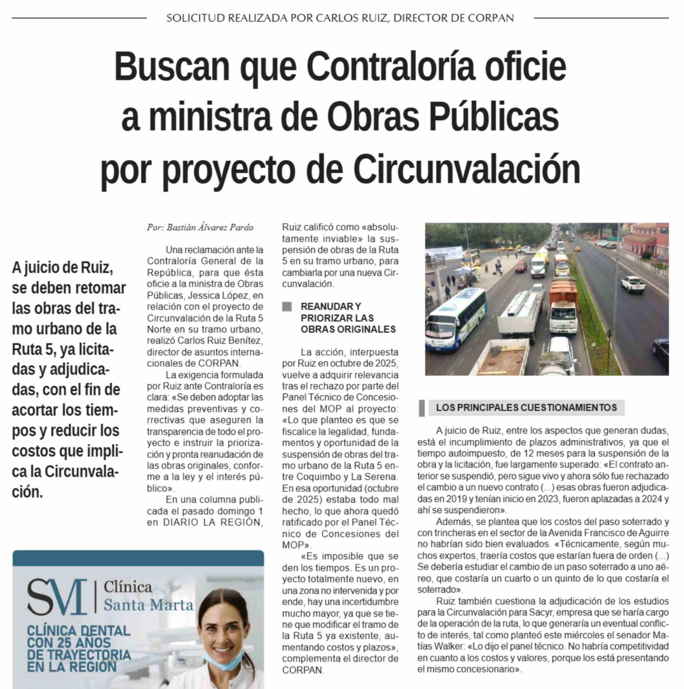 Buscan que Contraloría oficie a ministra de Obras Públicas por proyecto de Circunvalación