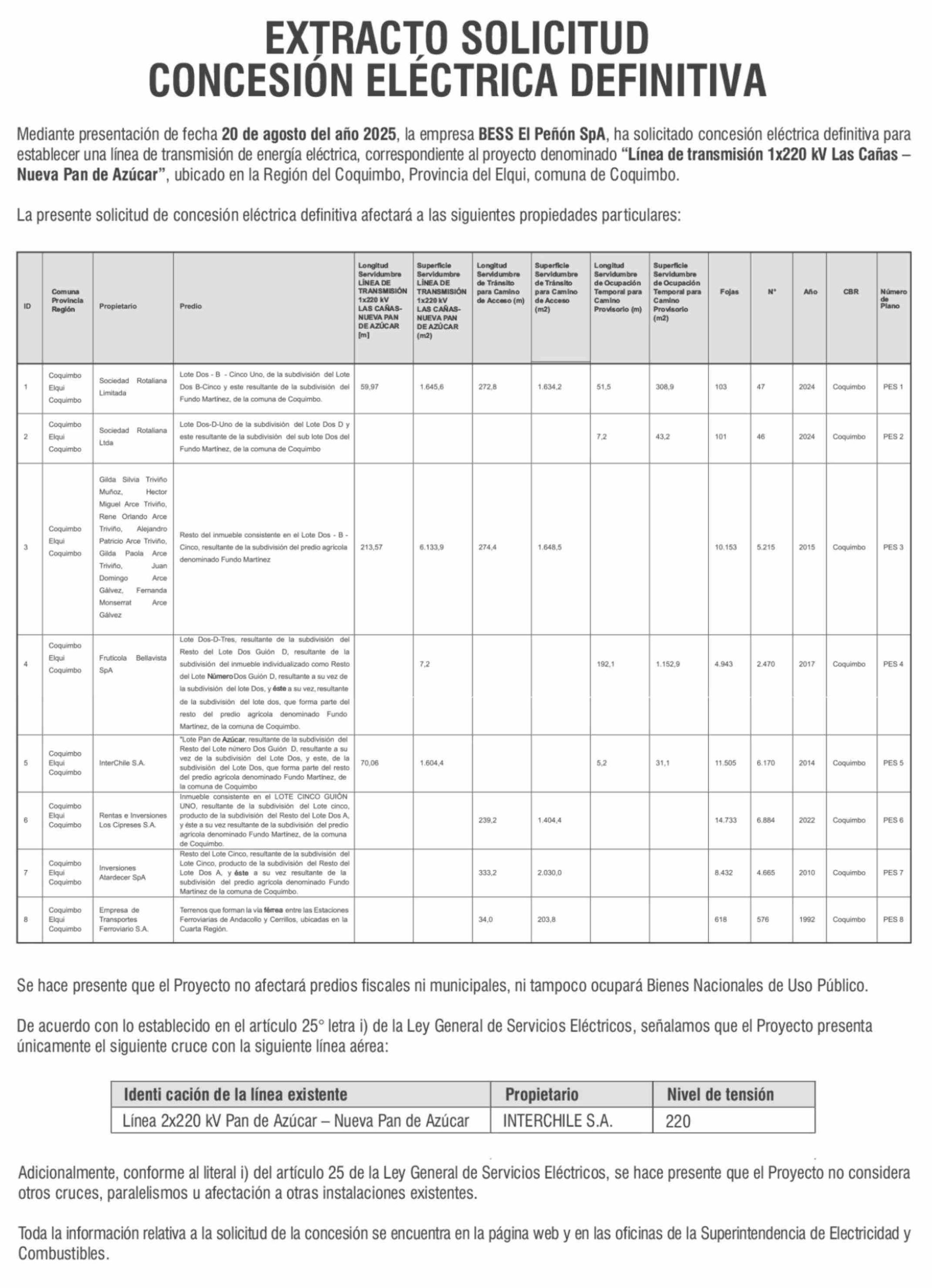 EXTRACTO SOLICITUD CONCESIÓN ELÉCTRICA DEFINITIVA
