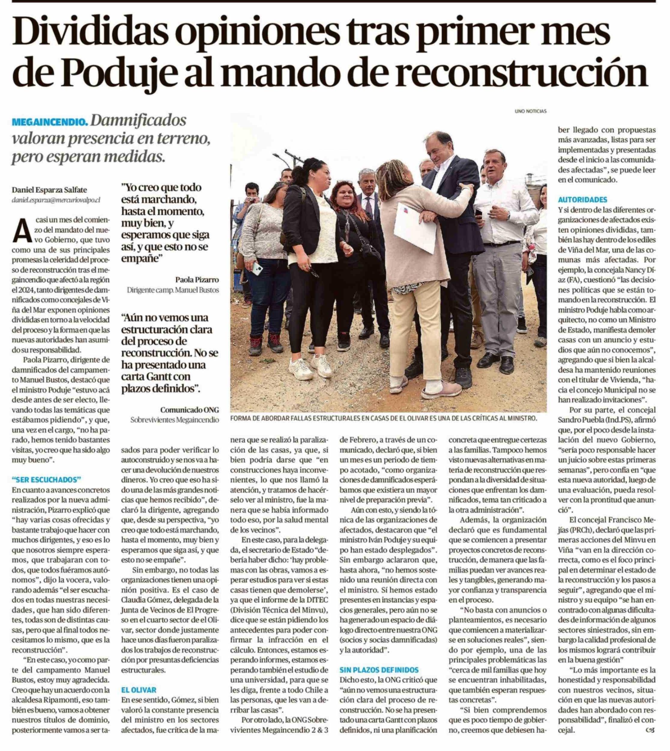 Divididas opiniones tras primer mes de Poduje al mando de reconstrucción