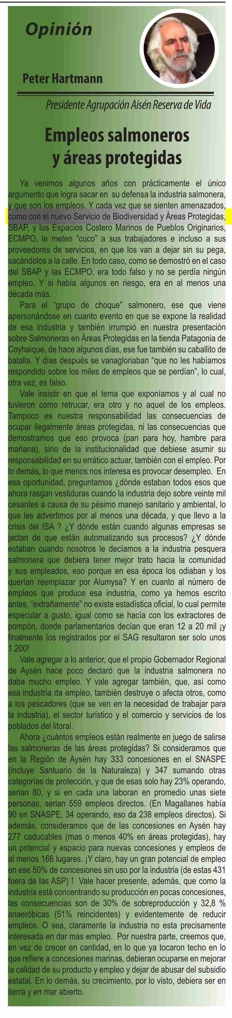 Columnas de Opinión: Empleos salmoneros y áreas protegidas