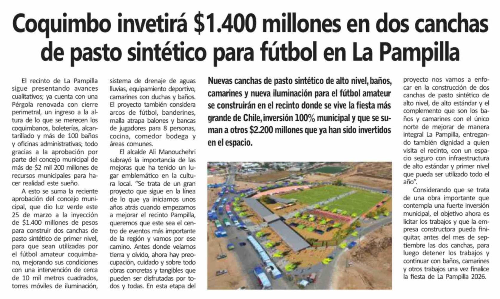 Coquimbo invetirá $1.400 millones en dos canchas de pasto sintético para fútbol en La Pampilla