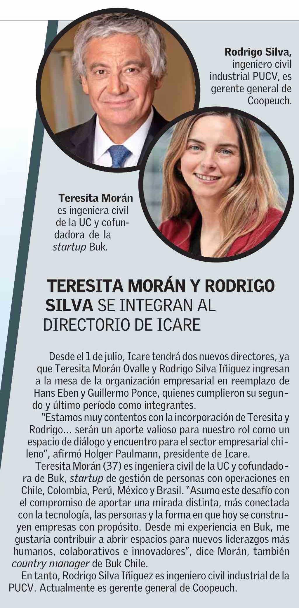 TERESITA MORÁN Y RODRIGO SILVA SE INTEGRAN AL DIRECTORIO DE ICARE