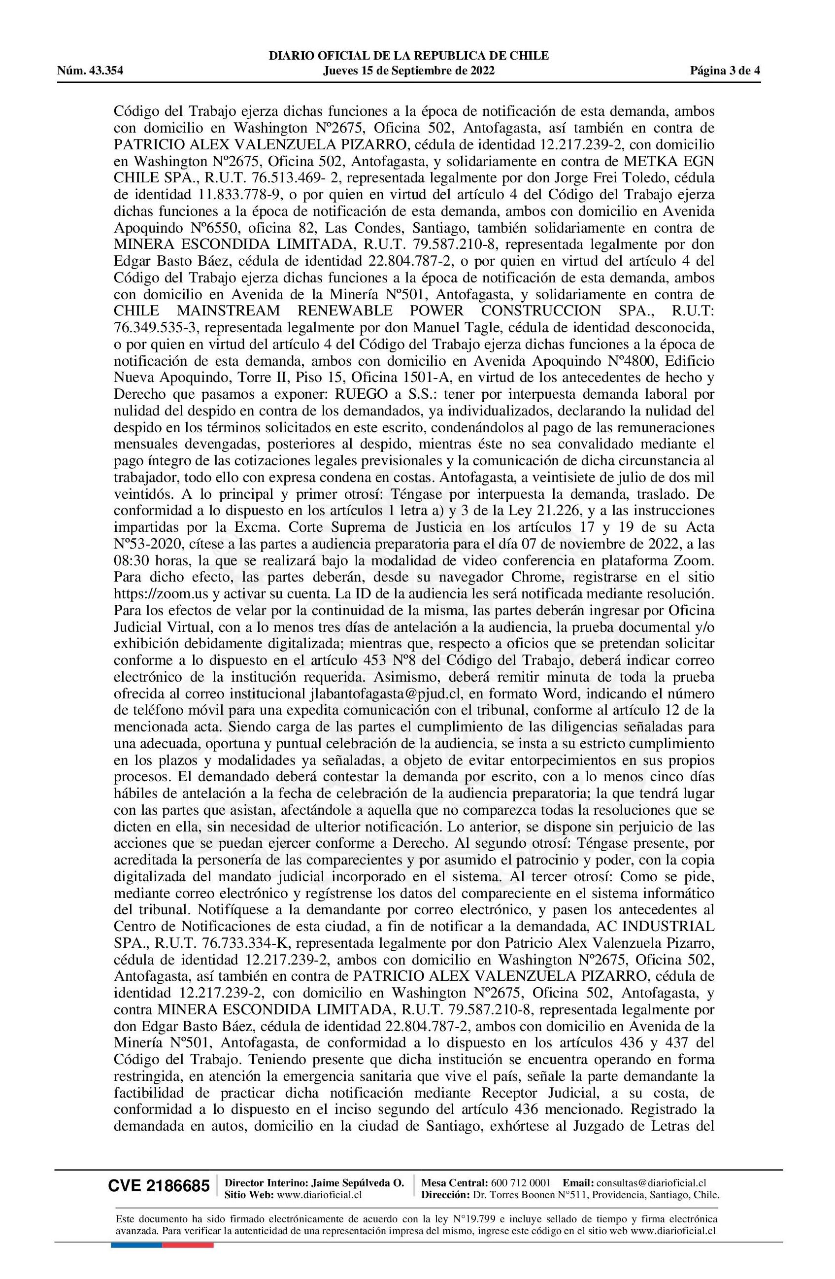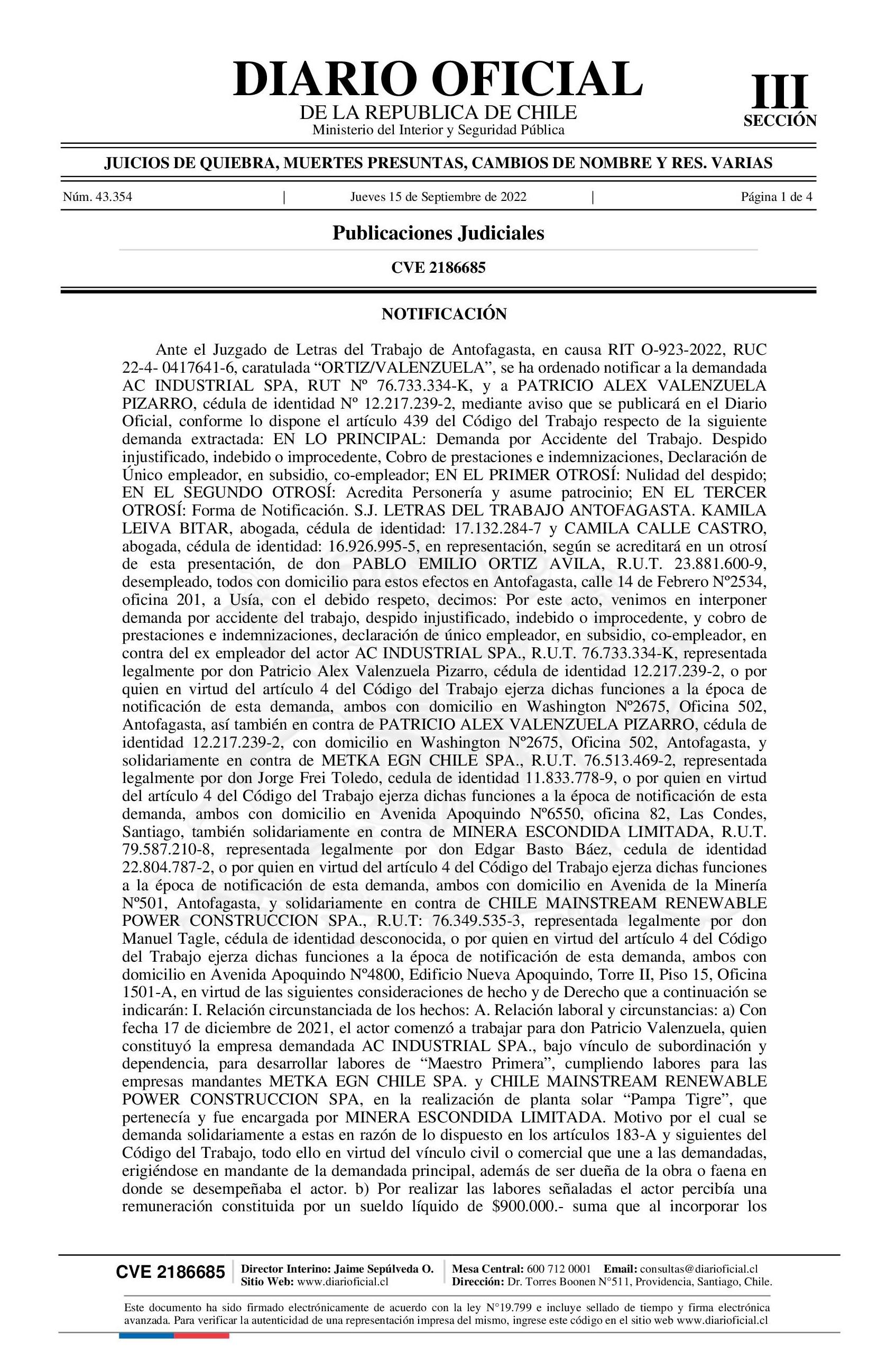 Diario Oficial Edición Electrónica (Diario Oficial de Chile - 3 Public. Judiciales)