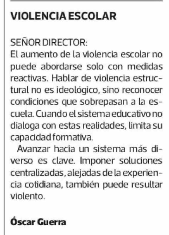 Cartas: VIOLENCIA ESCOLAR
